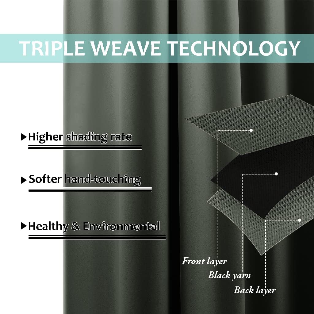 - Unique Design: Draperies constructed with 2 layers are all triple weave blackout fabric, balancing room temperature by insulating against summer heat and winter chill meanwhile protect privacy. No chemical coating, no formaldehyde, bring harmony to your family.