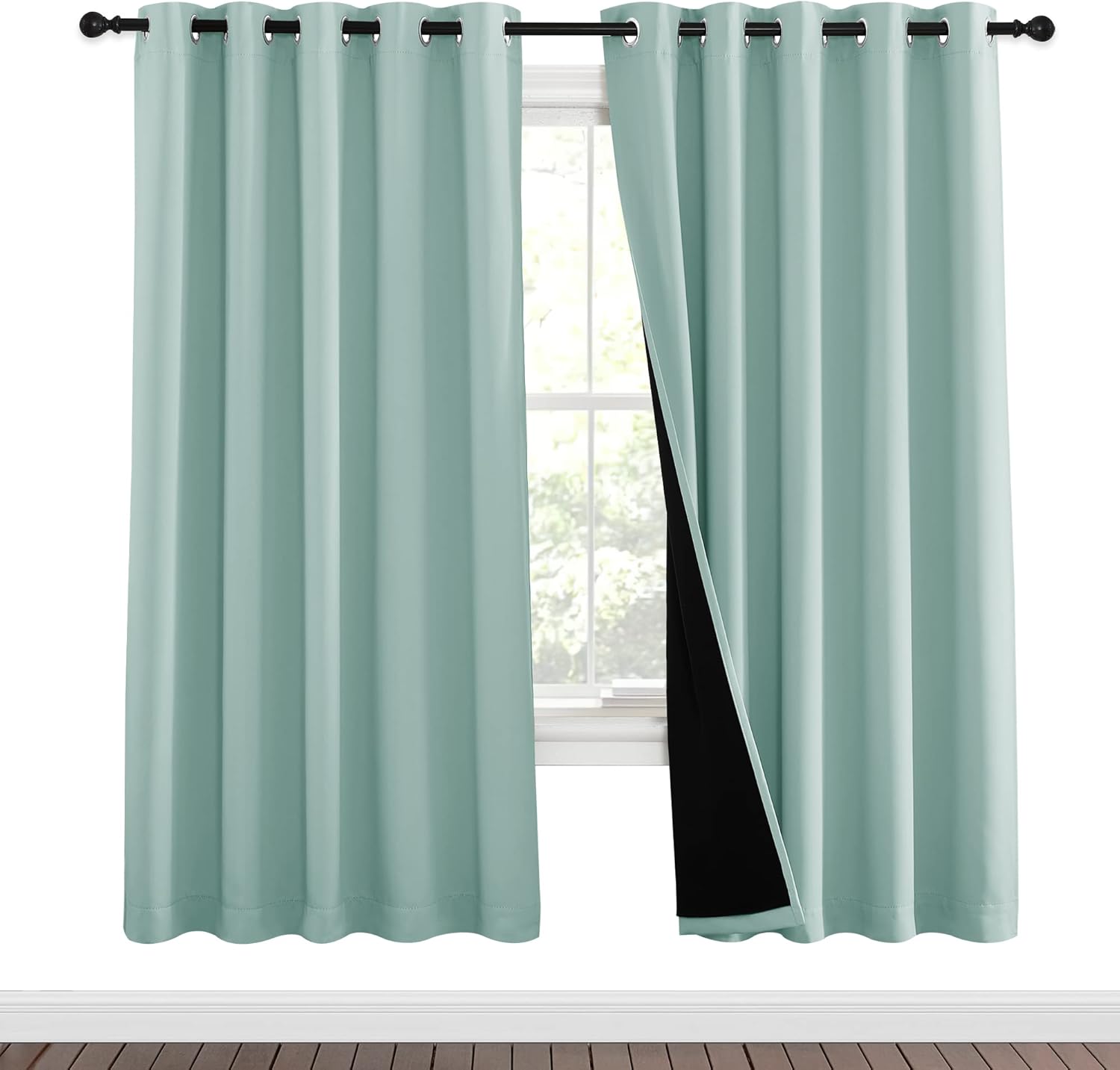 NICETOWN 100% Blackout Window Curtain Panels, Full Light Blocking Drapes with Black Liner for Nursery, 72-inch Drop Thermal Insulated Draperies (Aqua Blue, 2 Pieces, 62-inch Wide Per Panel)