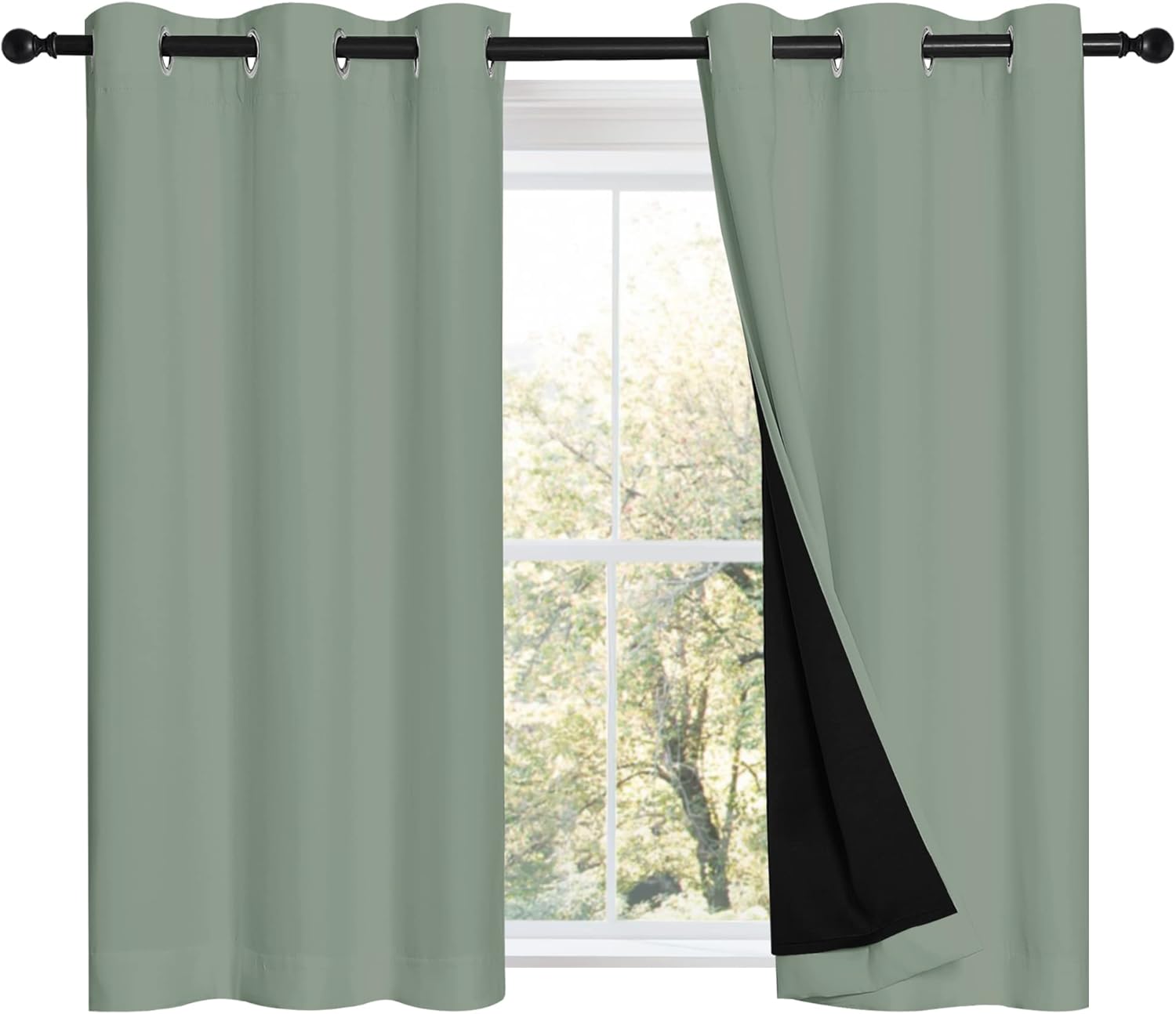 NICETOWN Greyish Green 100% Blackout Curtains 45 inches Long, 2 Thick Layers Completely Blackout Window Treatment Thermal Insulated Lined Drapes for Small Window (1 Pair, 42 inches Width Each Panel)