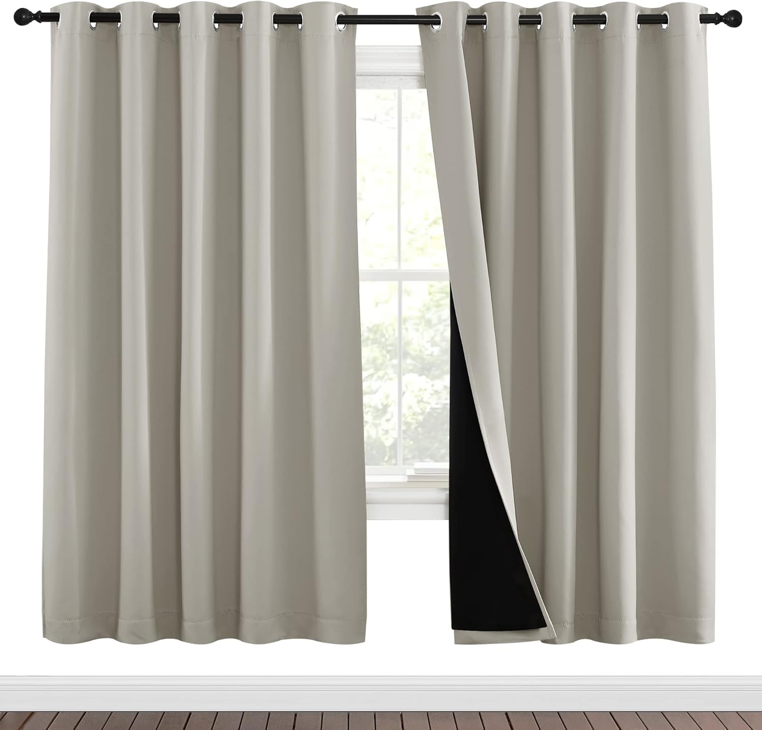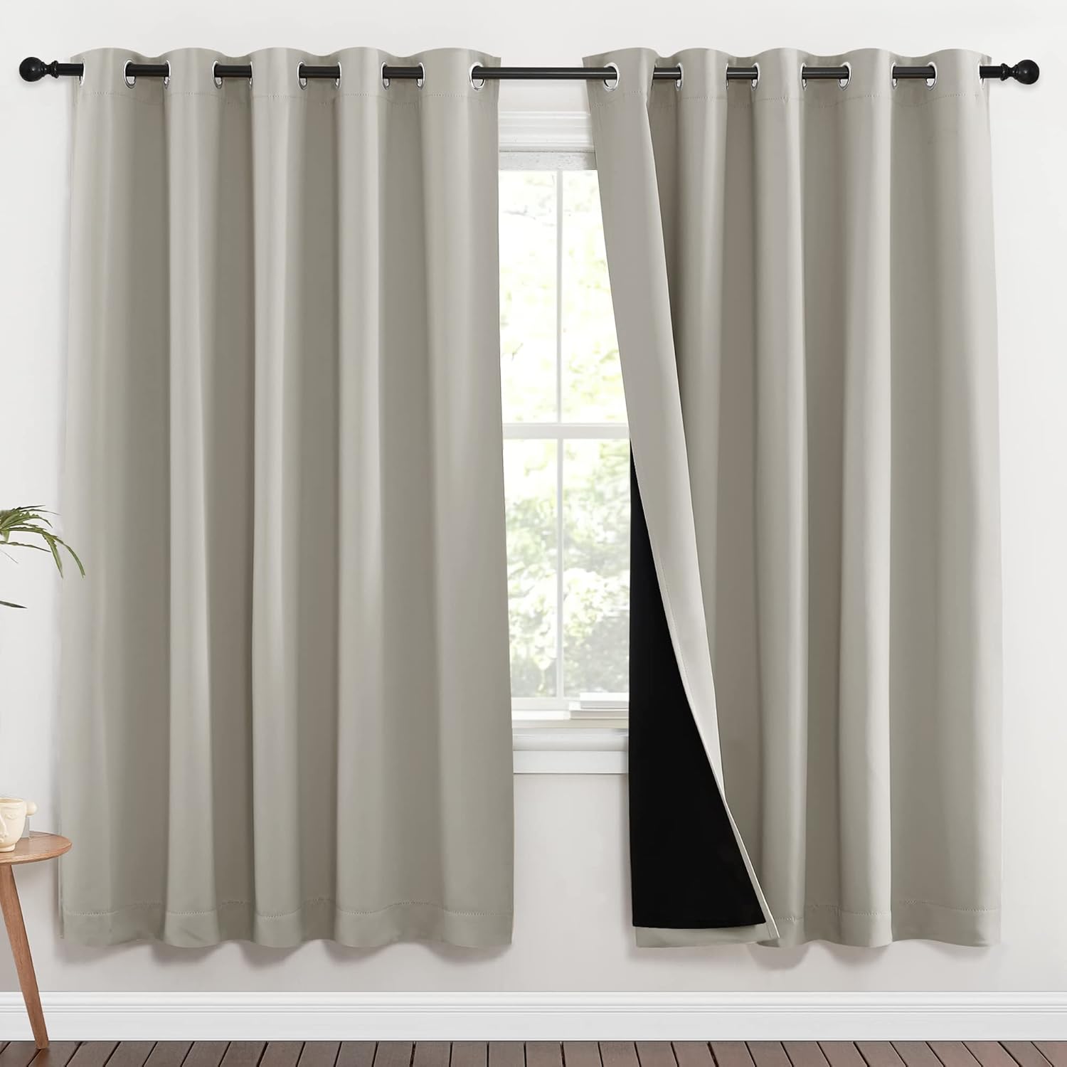 NICETOWN 100% Blackout Window Curtain Panels, Full Light Blocking Drapes with Black Liner for Nursery, 72-inch Drop Thermal Insulated Draperies (Natural, 2 Pieces, 70-inch Wide Per Panel)