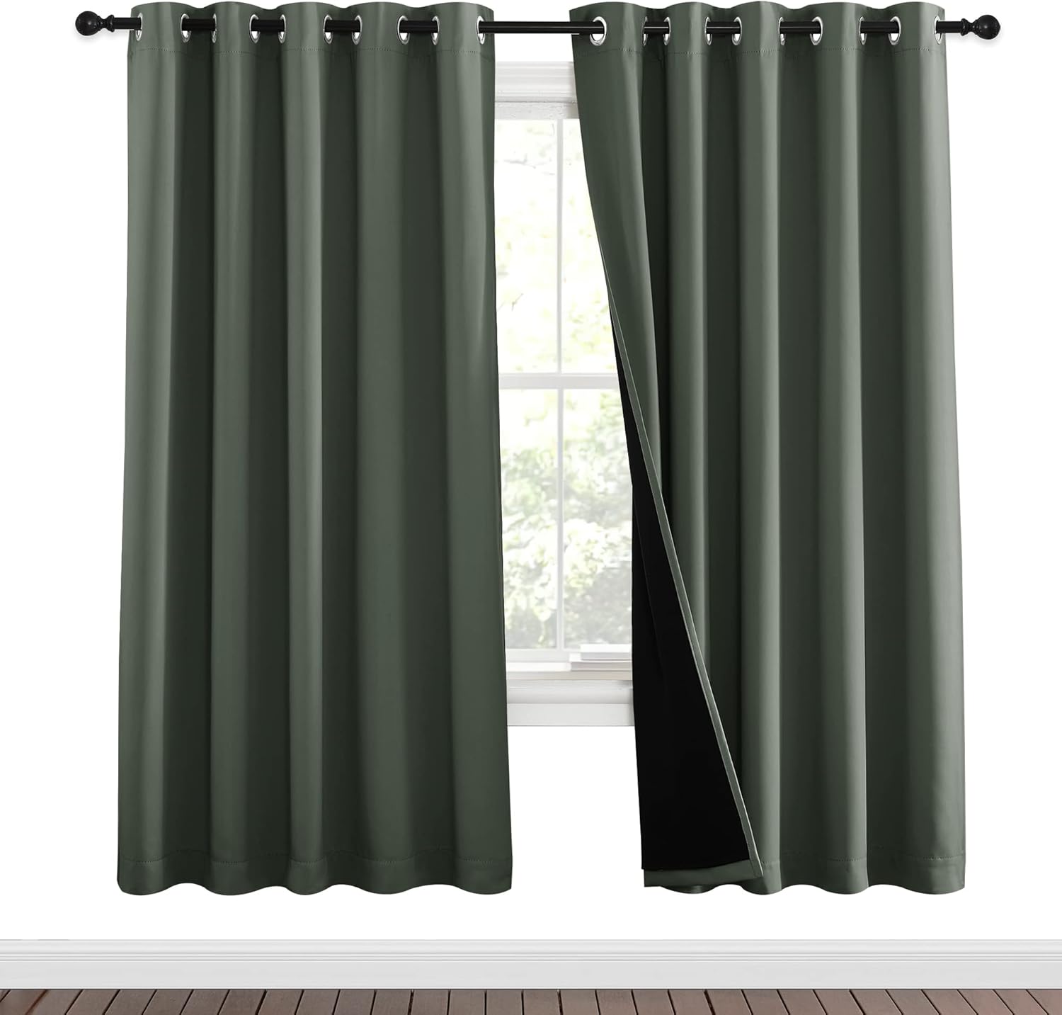 NICETOWN 100% Blackout Window Curtain Panels, Full Light Blocking Drapes with Black Liner for Nursery, 72-inch Drop Thermal Insulated Draperies (Dark Mallard, 2 Pieces, 62-inch Wide Per Panel)