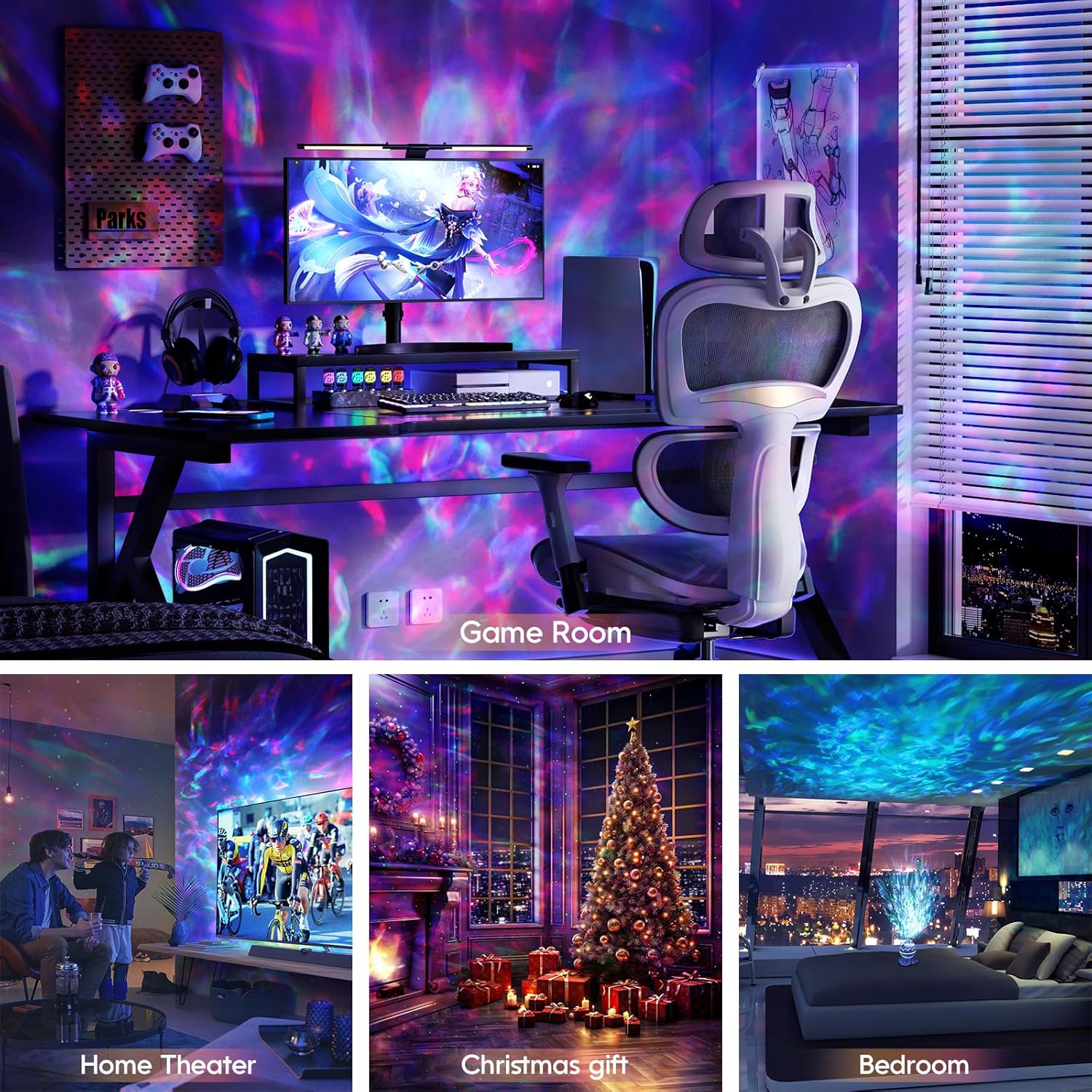 - Sound Activated & Built-in Bluetooth 5.1 Speaker - Our galaxy projector led lights for the bedroom has a cool feature where the projection can sync with your music and move along with the beat, creating a fun and energetic party atmosphere. You can also connect via Bluetooth to play music from this galaxy light projector and watch in amazement as the little star lights and nebula clouds move rhythmically to the beat of the music.