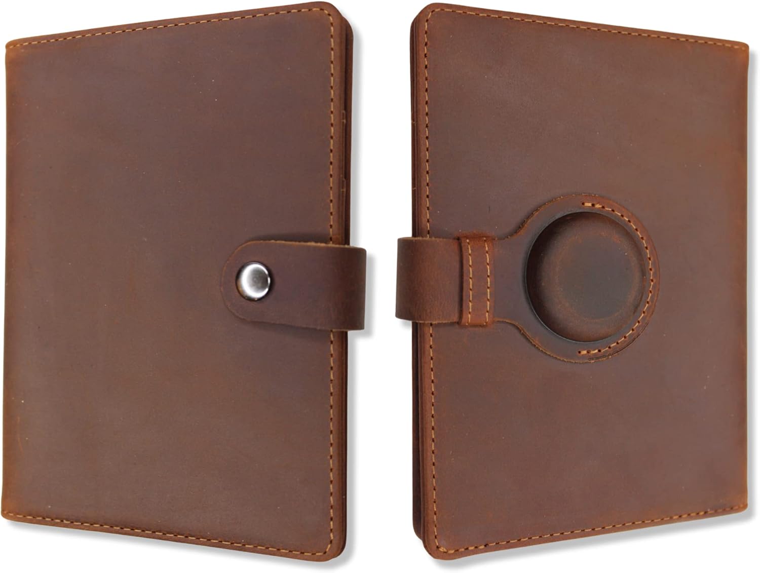 - ➡️ MADE FOR APPLE AIR TAGS AND MOTO TAGS: Our Genuine Leather Passport Holder features a built-in pocket that securely holds your Apple AirTag and Moto Tag trackers in place. Its design provides excellent signal strength for GPS tracking. PLEASE NOTE: THIS PRODUCT DOES NOT COME WITH AN APPLE AIRTAG OR MOTO TAG