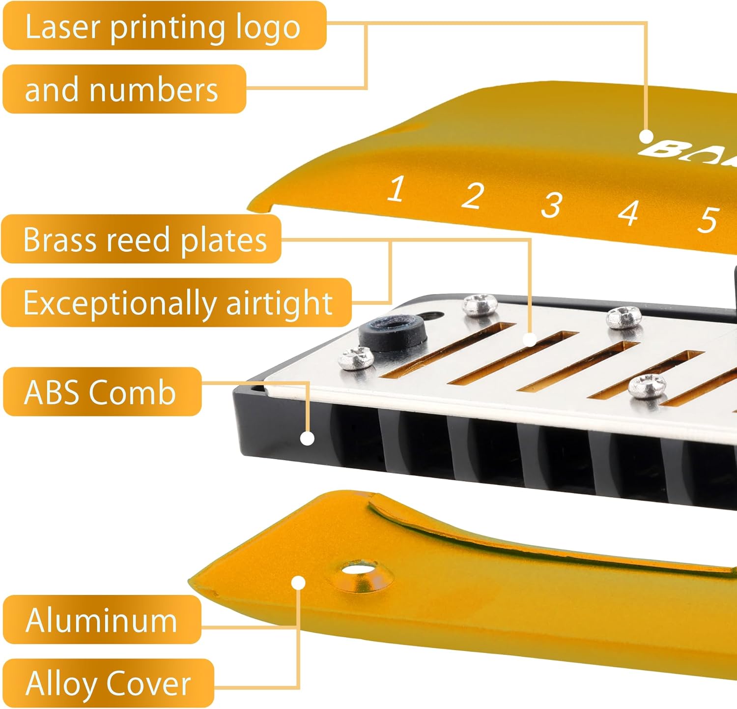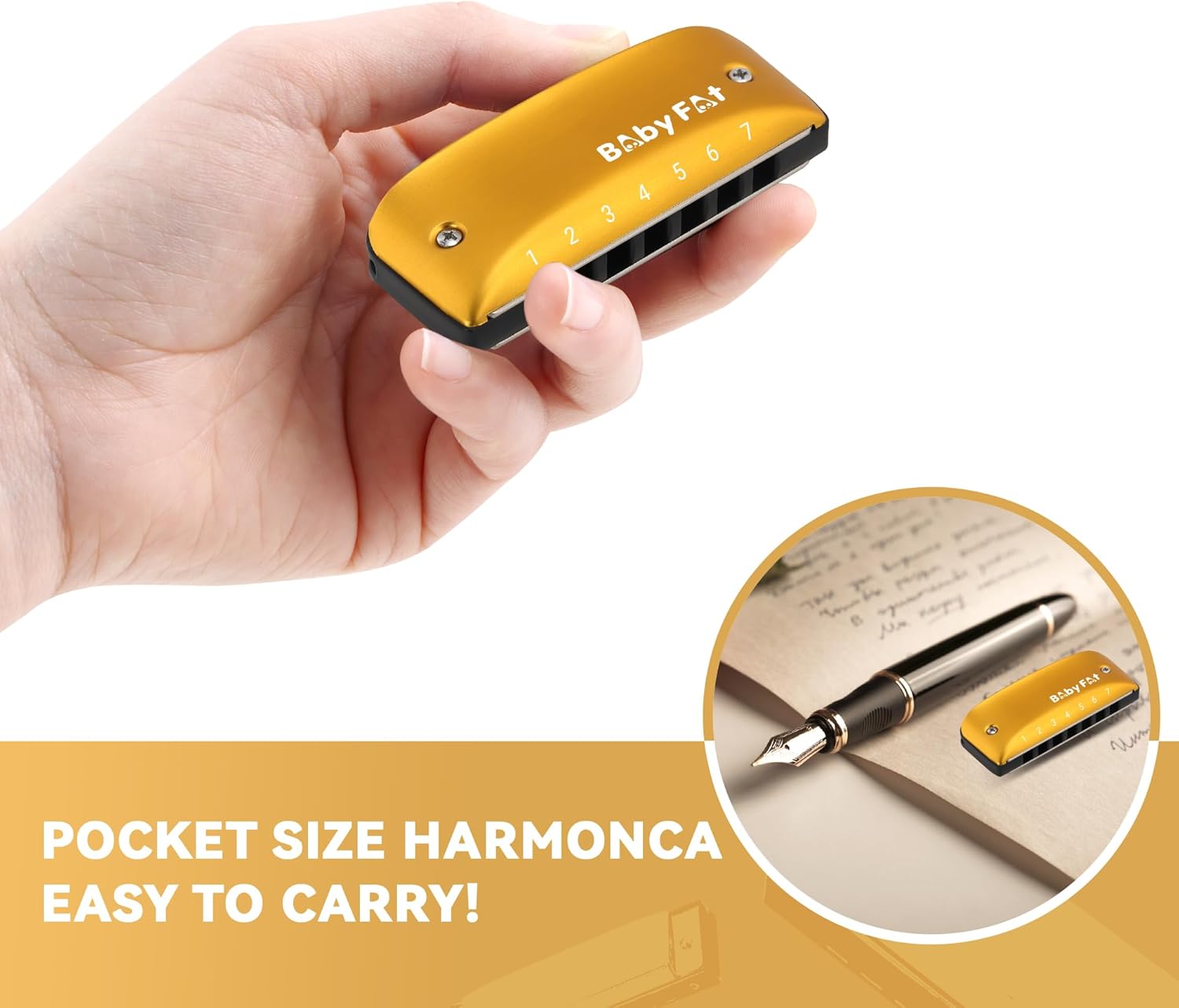 BabyFat 7 Hole Blues Mini Harmonica Set,Diatonic Harmonica with free lanyards,Gifts for Professional Players and Beginners,Easy-playing Musical Instrument(Key of G)