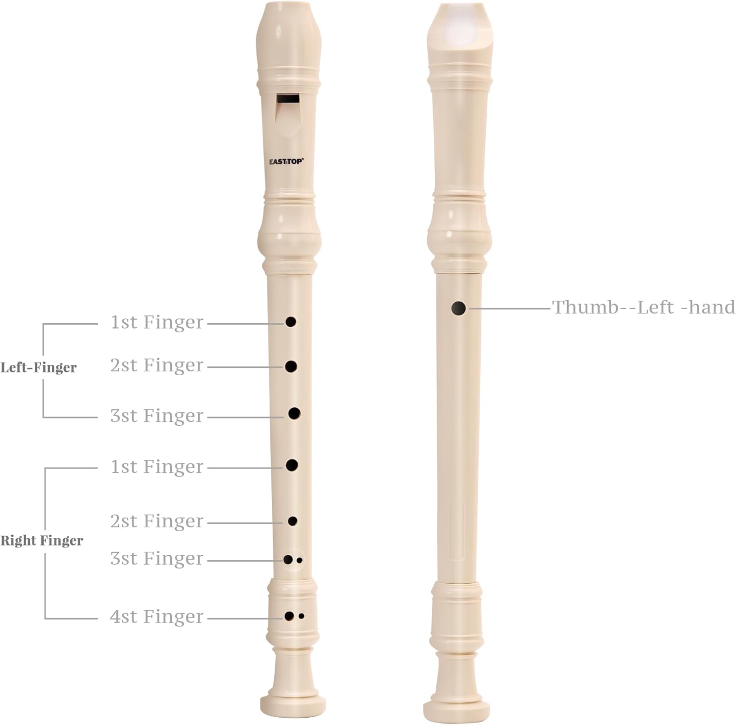 - ♫ Perfect for Beginners and Kids — EASTTOP R08 recorders are designed for beginners, it is very easy to control the airflow and make the clear sound.The mouthpiece is round and smooth shape so comfortable to play. The German fingering style ensures that F's fingering is consistent. It is easy for beginners to master the playing skill.