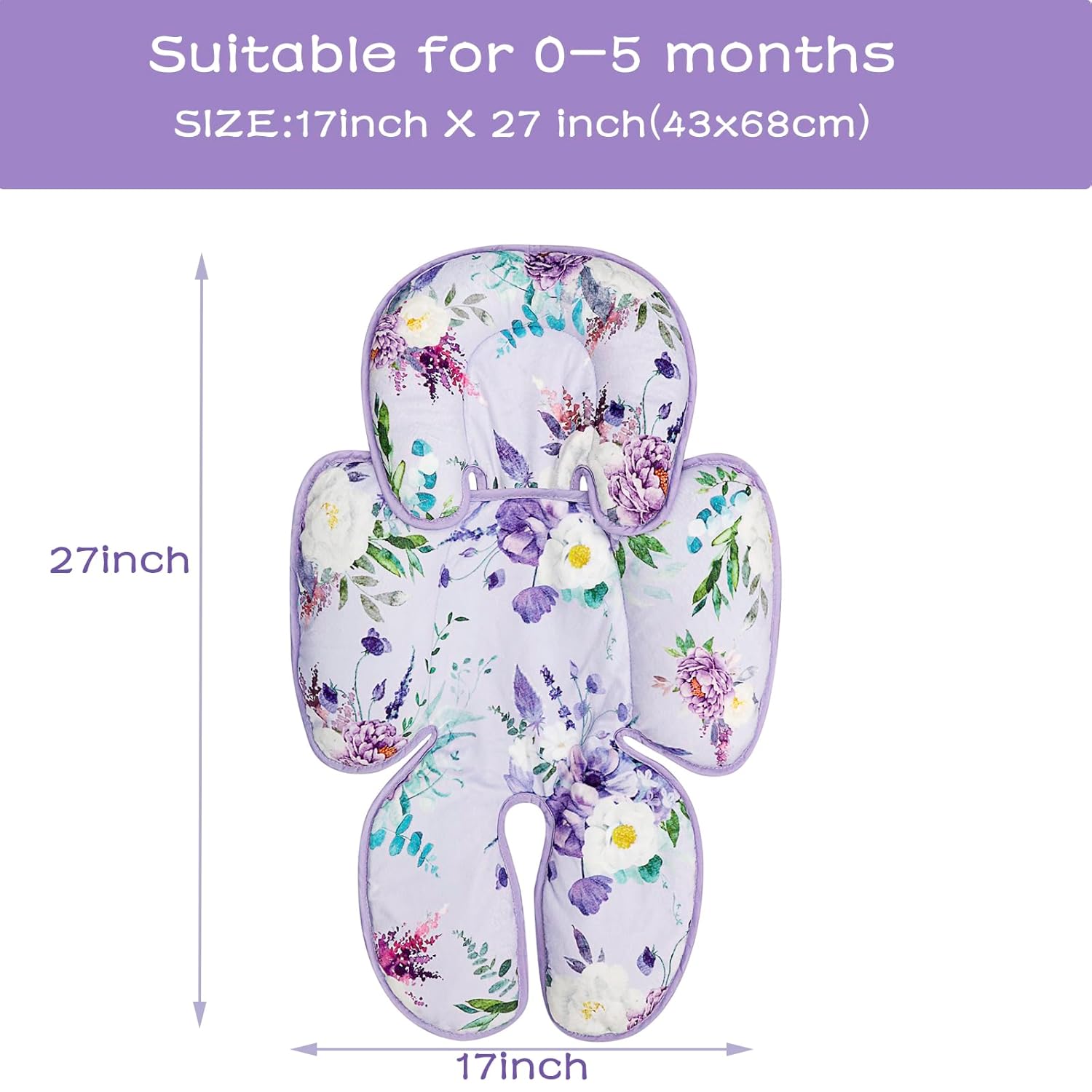 2 in 1 Infant Car Seat Insert, Car Seat Head Support Baby Girls Boys, Soft Newborn Carseat Insert Cushion, Perfect for Carseats, Strollers, Swings (Purple Flower)