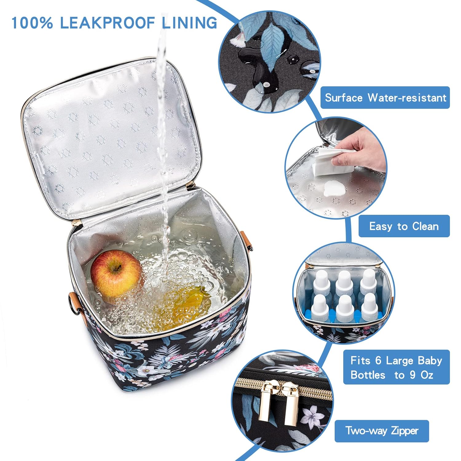 Breastmilk Cooler Bag with Ice Pack Fits 6 Baby Bottles Up to 9 Ounce, Baby Bottle Bag with Shoulder Strap for Nursing Mom Daycare, Floral