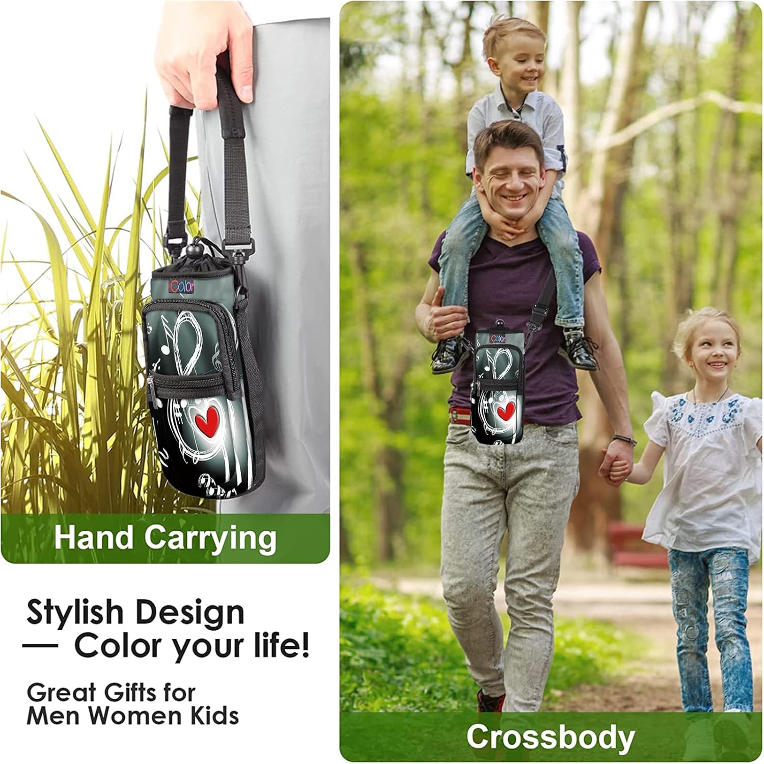 - icolor Crossbody Water Bottle Carrier Holder Pouch with Call Phone Bag have 4 size 25oz(Diameter 3.23",Height 9.05")/32oz(Diameter 3.82",Height 7.87")/40oz(Diameter 3.82",Height 9.05")/64oz (Diameter 5.12",Height 9.06"),Adjustable Padded Shoulder strap about Min:27.1, Max:48.4"