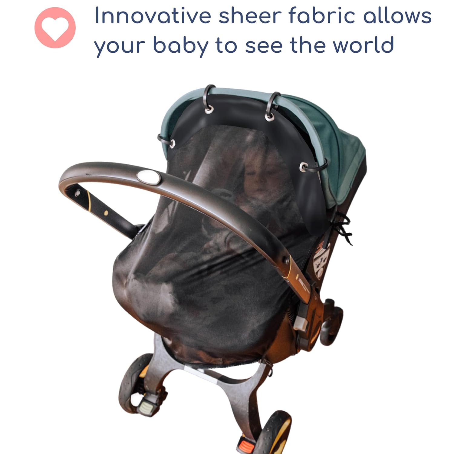 - Sun Protection With No Compromise - Blocks up to 80% of harmful sunrays. The ultimate stroller shade, sun protection for baby stroller, and sun blocker for stroller in one breathable, see-through design.