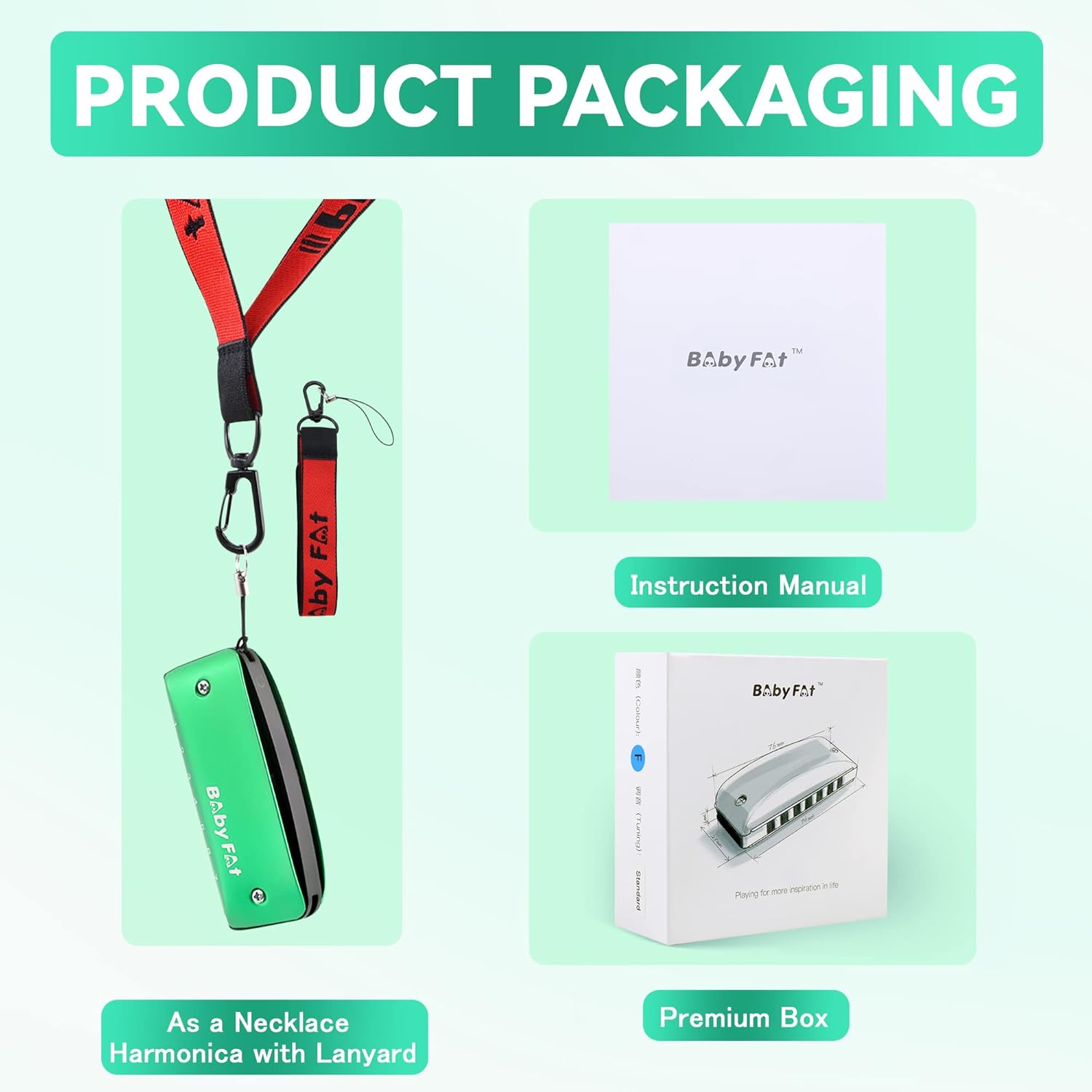 BabyFat 7 Hole Blues Mini Harmonica Set,Diatonic Harmonica with free lanyards,Easy-playing Musical Instrument(Key of F)
