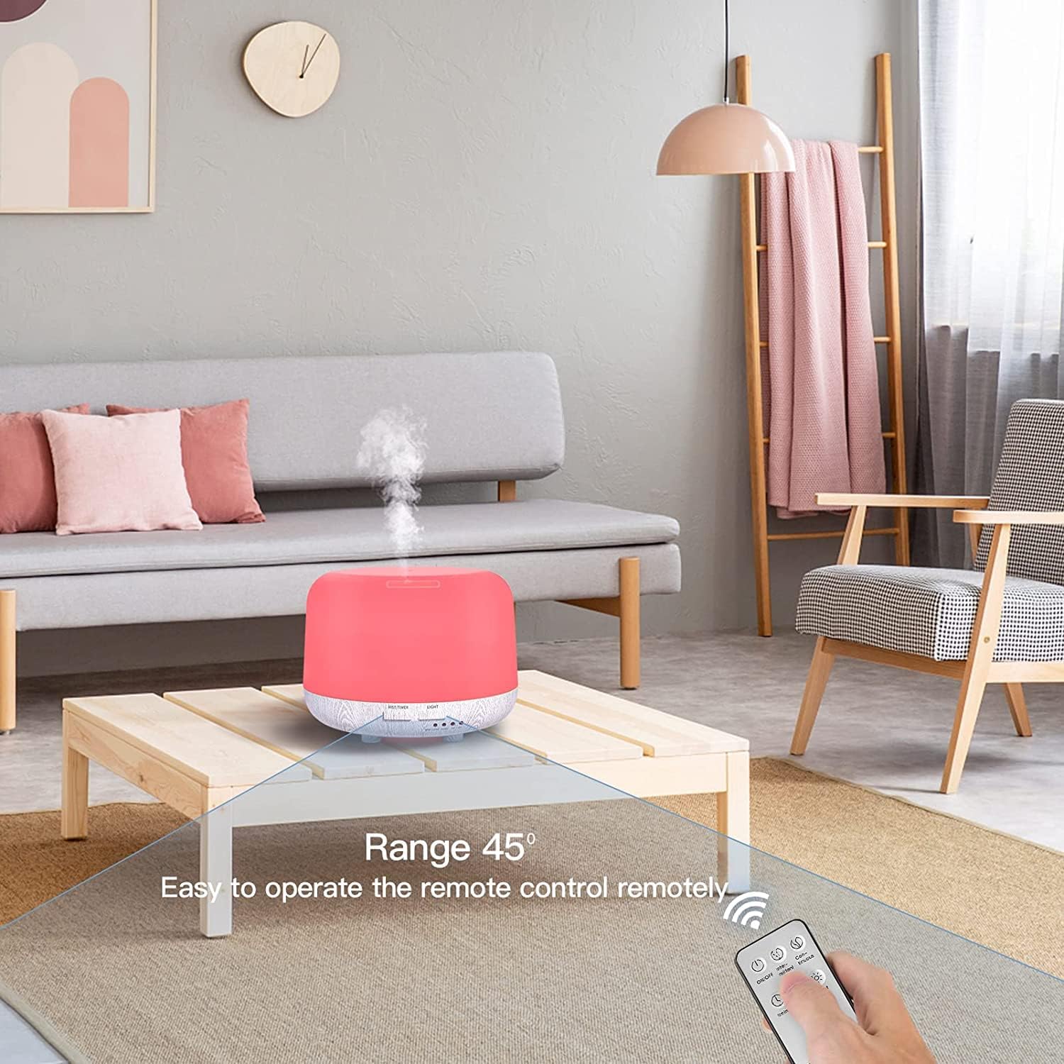 - 【Remote Control & Ultrasonic Technology】The Aroma therapy diffuser with a remote.When you are watching TV or do yoga, you can control the scented oil diffuser by the remote easily.when you travel you can also take the frangrance defuser to hotel for humidification.Using ultrasonic technology,the infuser with essential oils produces a dry scent air for home quiet.Remote switched BIG/SMALL fog for large room or small room.