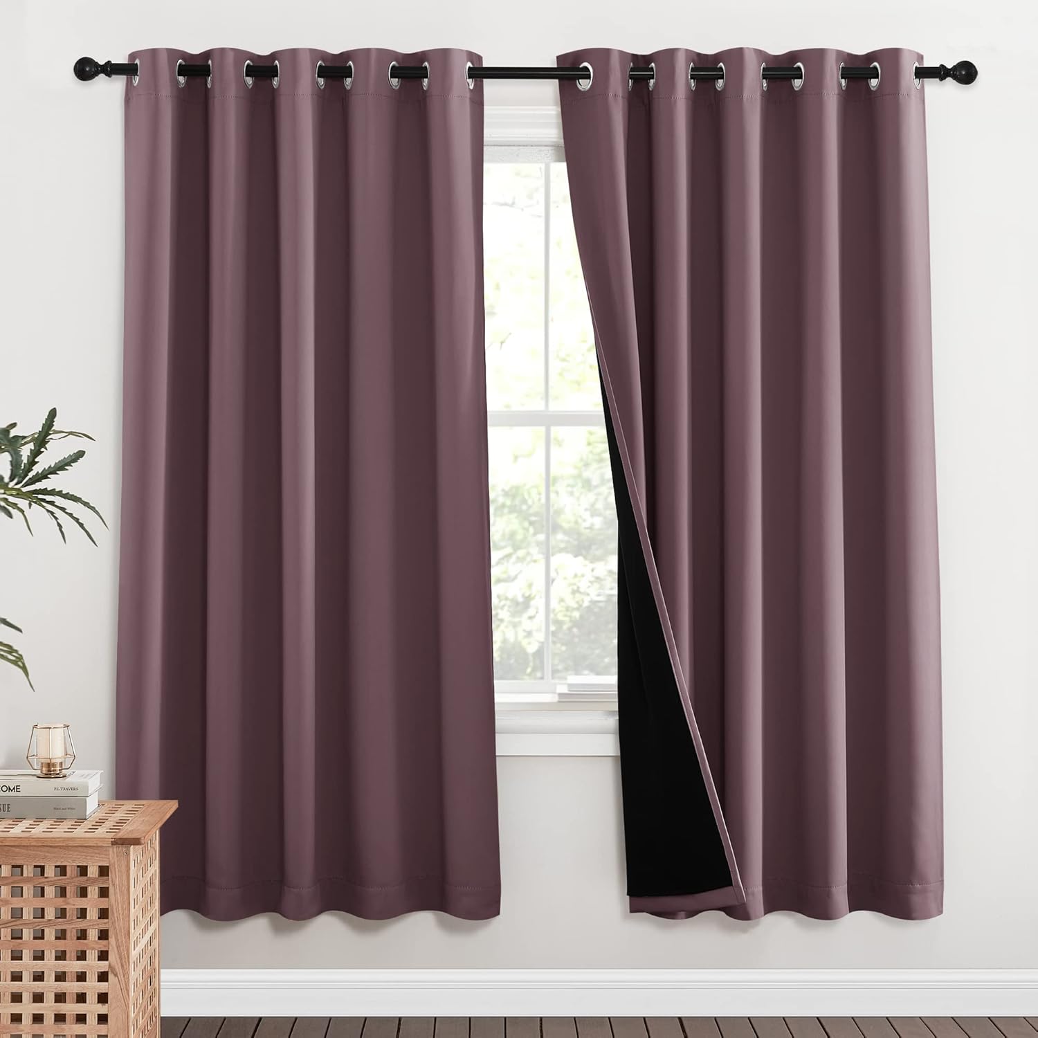 NICETOWN 100% Blackout Window Curtain Panels, Full Light Blocking Drapes with Black Liner for Nursery, 72-inch Drop Thermal Insulated Draperies (Dry Rose, 2 Pieces, 62-inch Wide Per Panel)