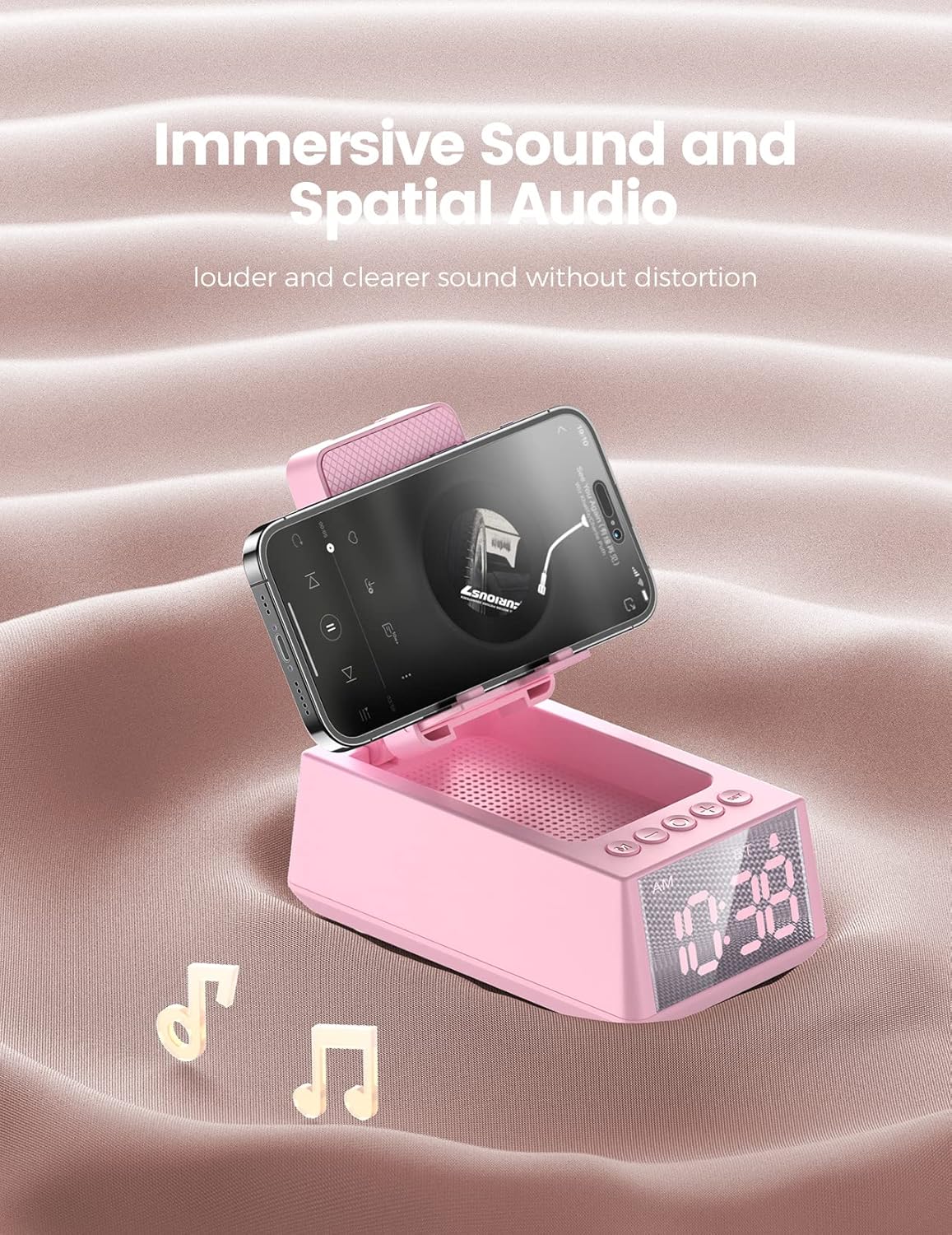 - 3 In 1 Design: A multifunctional, stylish and cool small object that combines a Bluetooth speaker, clock and mobile phone stand. It adopts streamline and round corner design, beautiful and generous. The rotating bracket greatly enhances the viewing experience, ensuring all angles of usage requirements. Adopt stereophonic sound effect. Lower bass is more mellow, higher pitch is clearer, so you can also experience the ultimate cinema feeling at home. It's the perfect gift for yourself and others.