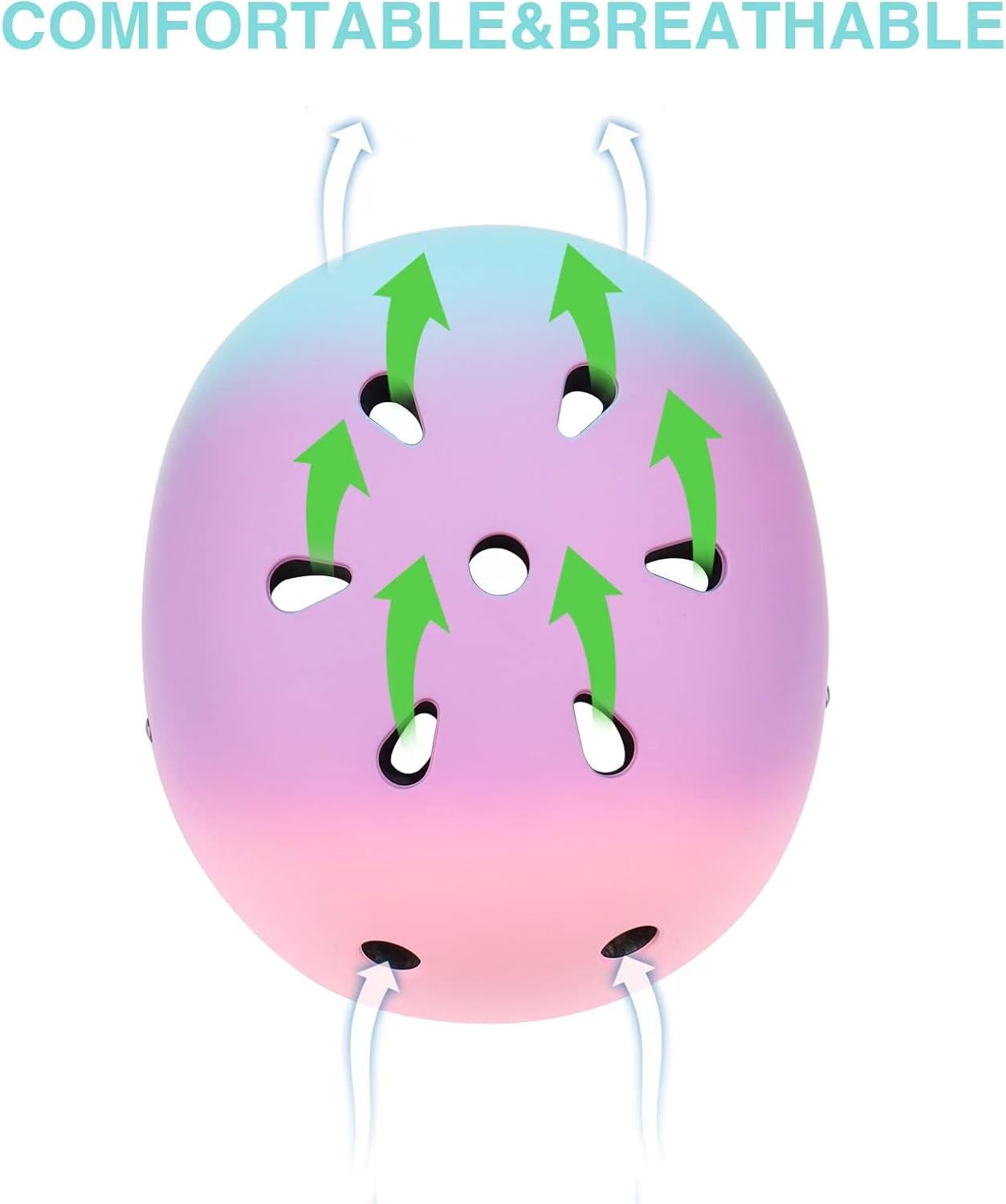 Color Gradient Adjustable Kids Bike Helmet Toddler Helmets for 3-5-8-14 Years Kids Girls Boys Youth Bicycle Helmet for Scooter Balance Bike Roller Skating Skateboard