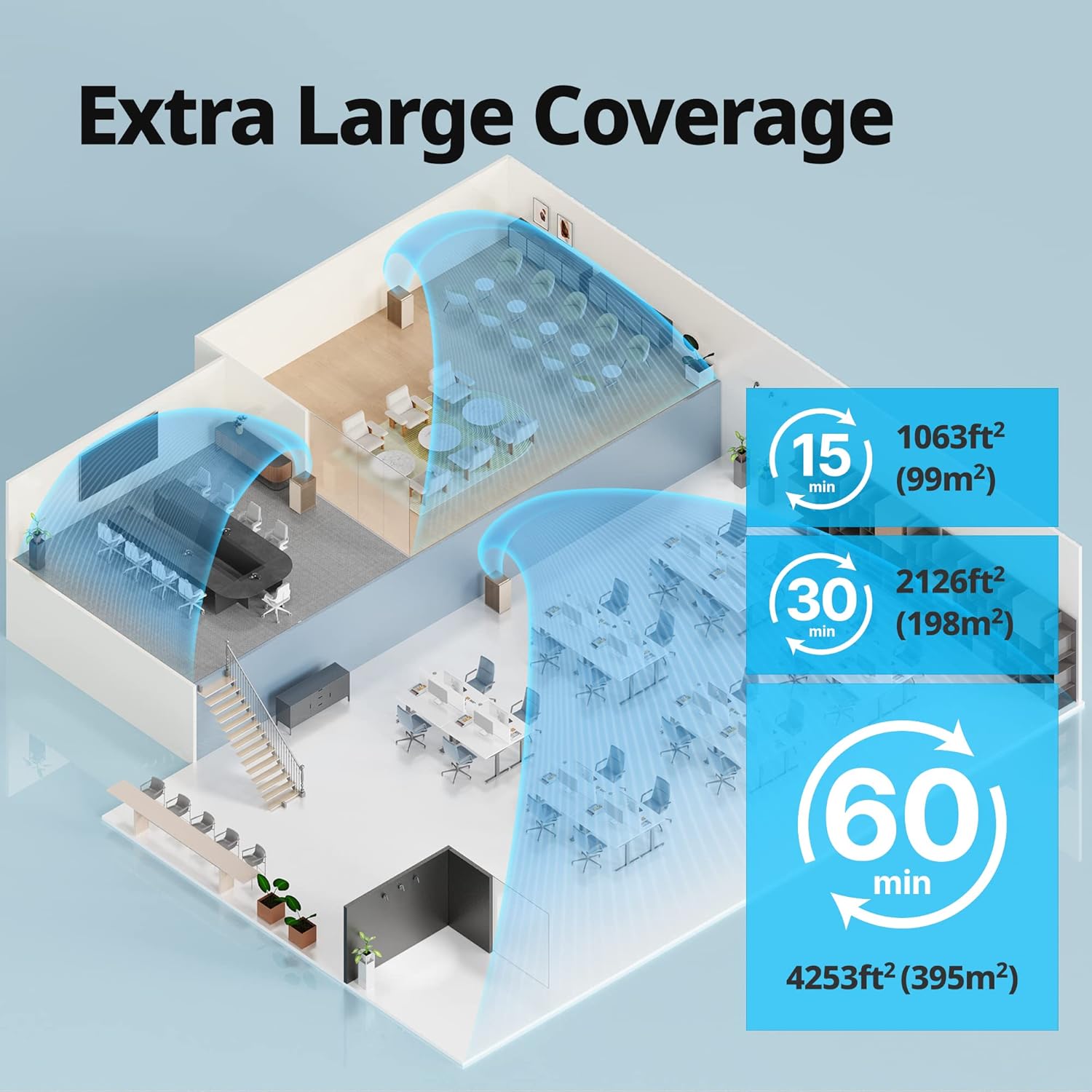COWAY Air Purifiers for Large Room Whole Home Up to 4,253ft², 2 Sets of XL Washable Pre-Filters and True HEPA Filters for Dual Purification, PM1.0 AQI, Turbo Mode, Timer, Wheels, 5yr Warranty, ProX(B)