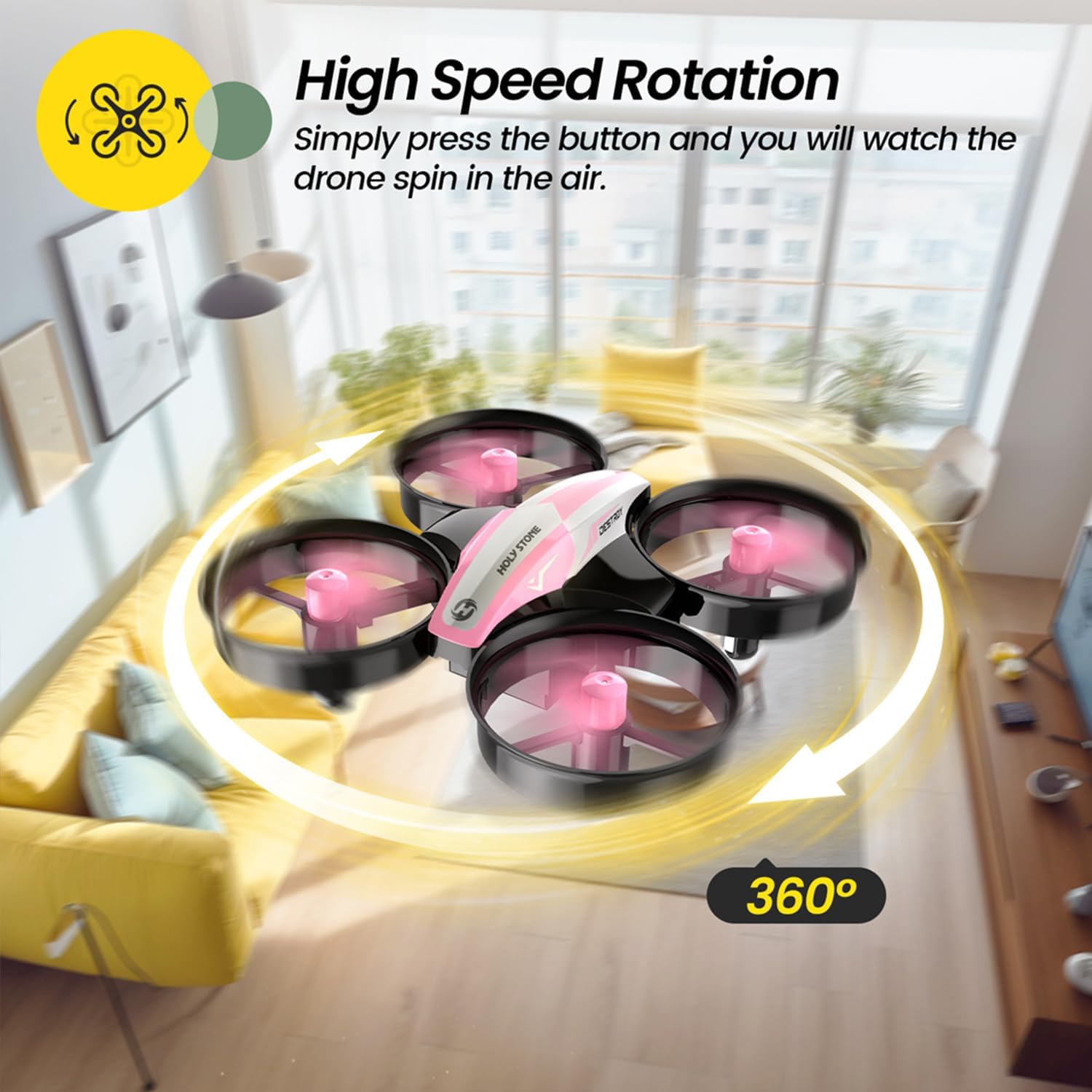 - [Mini & Portable Size]: This holy stone drone's size is 3.15*3.15*1.18 inches, which is easy to carry out. This mini drone brings players great fun everywhere for party, school, fishing, hiking, long journey etc. Definitely a great birthday/Christmas/holiday gift for kids or friends!