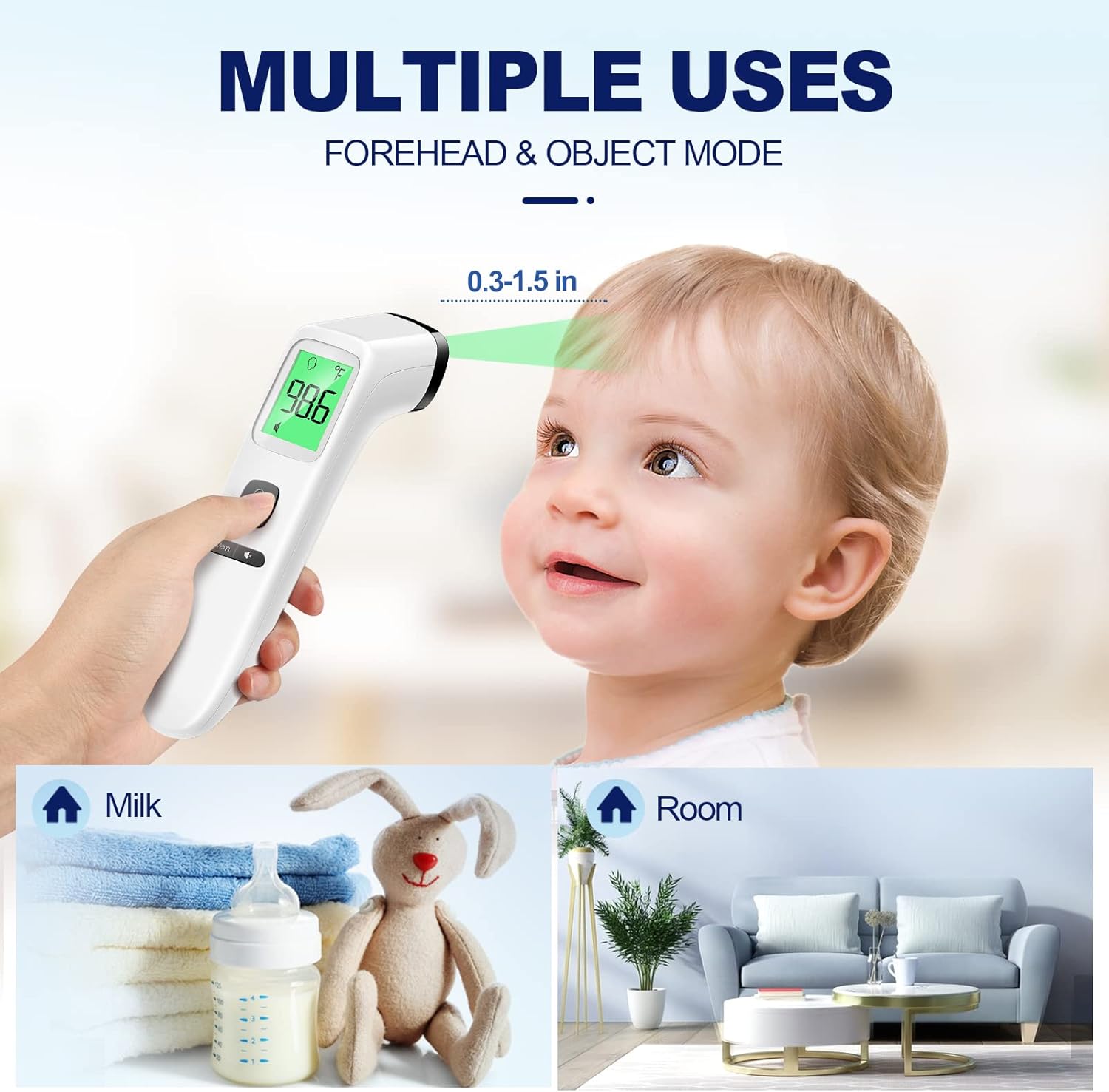 - Multi-mode Thermometer: Goodbaby Thermometer is designed for all ages,, infants, and elders. It not only supports the forehead function but is able to take room/object temperature.