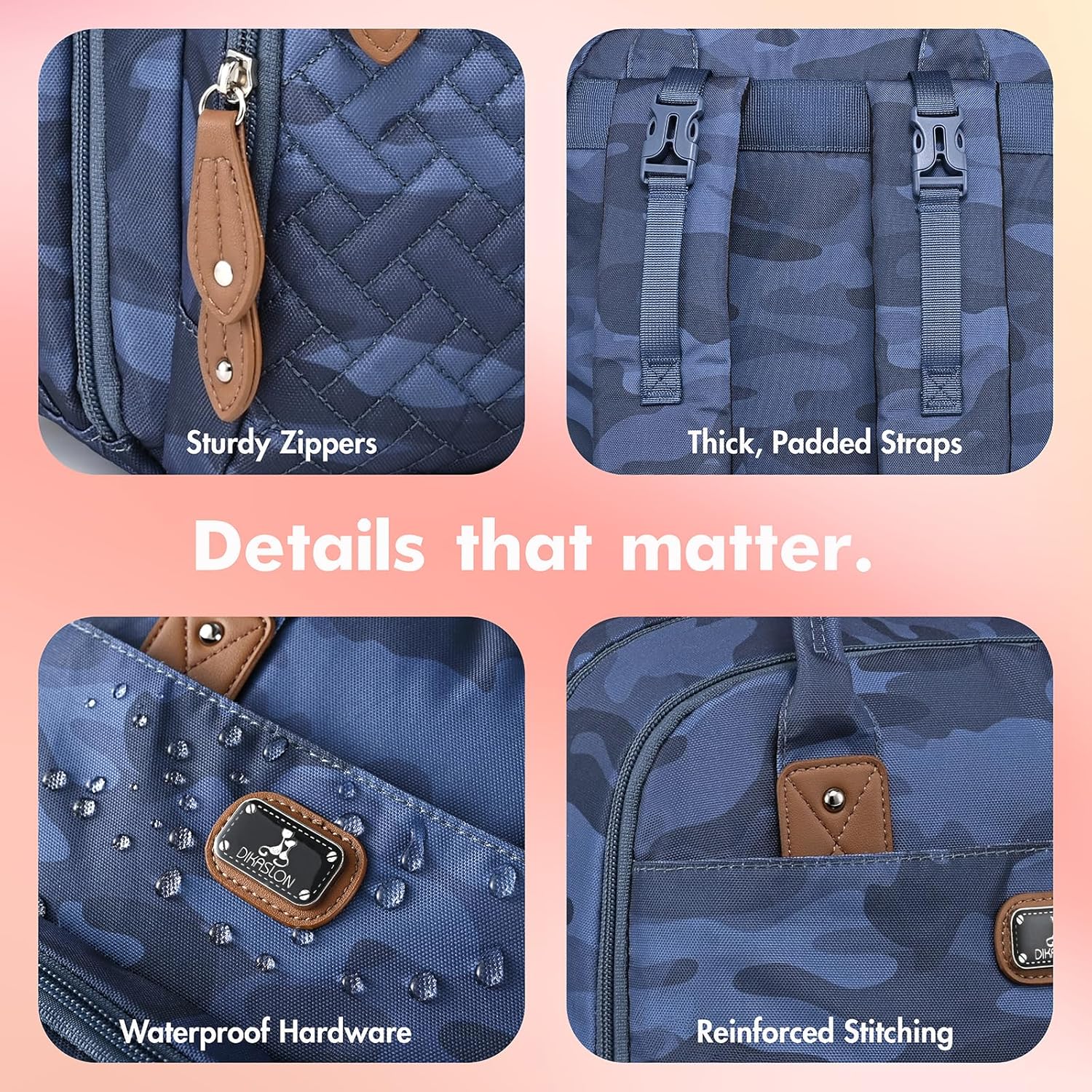 Dikaslon Diaper Bag Backpack with Changing Pad, Pacifier Case and Stroller Straps, Large Unisex Baby Bags for Boys Girls, Camo