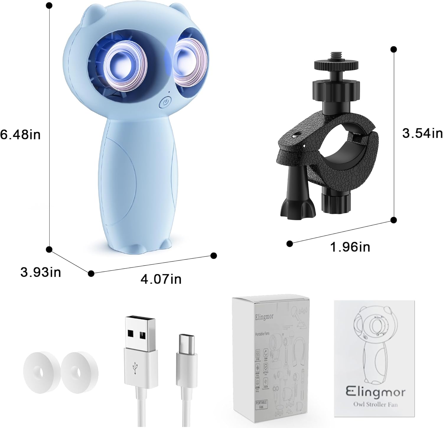 Stroller Fan Clips on for Baby,6000mAH Portable Stroller Fan Battery Operated, Rechargeable Fan Portable Handheld Cute Owl Cooling Aromatherapy Fan for Stroller Bed Desk Camping Travel
