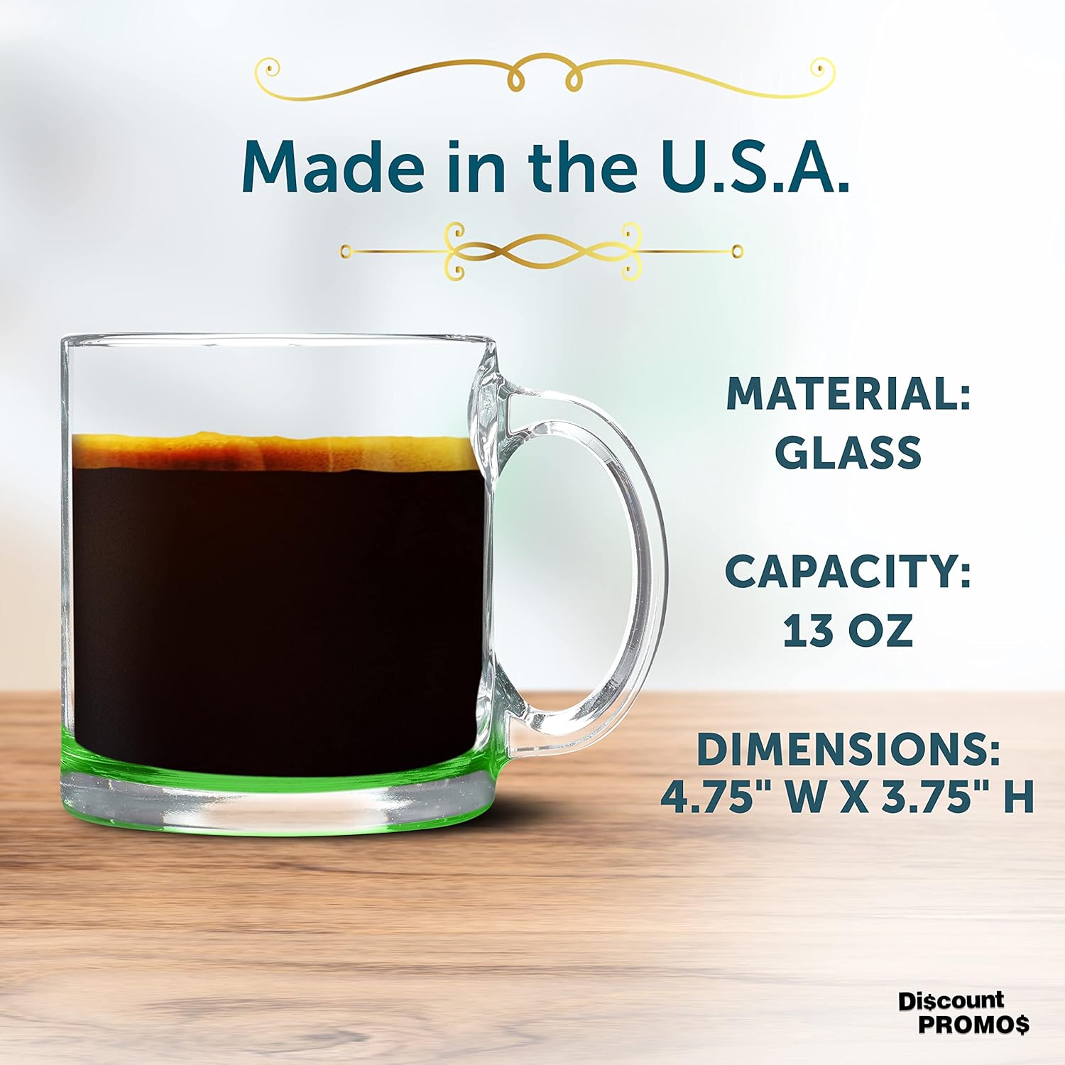 Libbey Clear Glass Coffee Mugs 13 oz. Set of 10, Bulk Pack - Perfect for Coffee, Tea, Espresso, Hot Cocoa, Other Beverages - Green Bottom