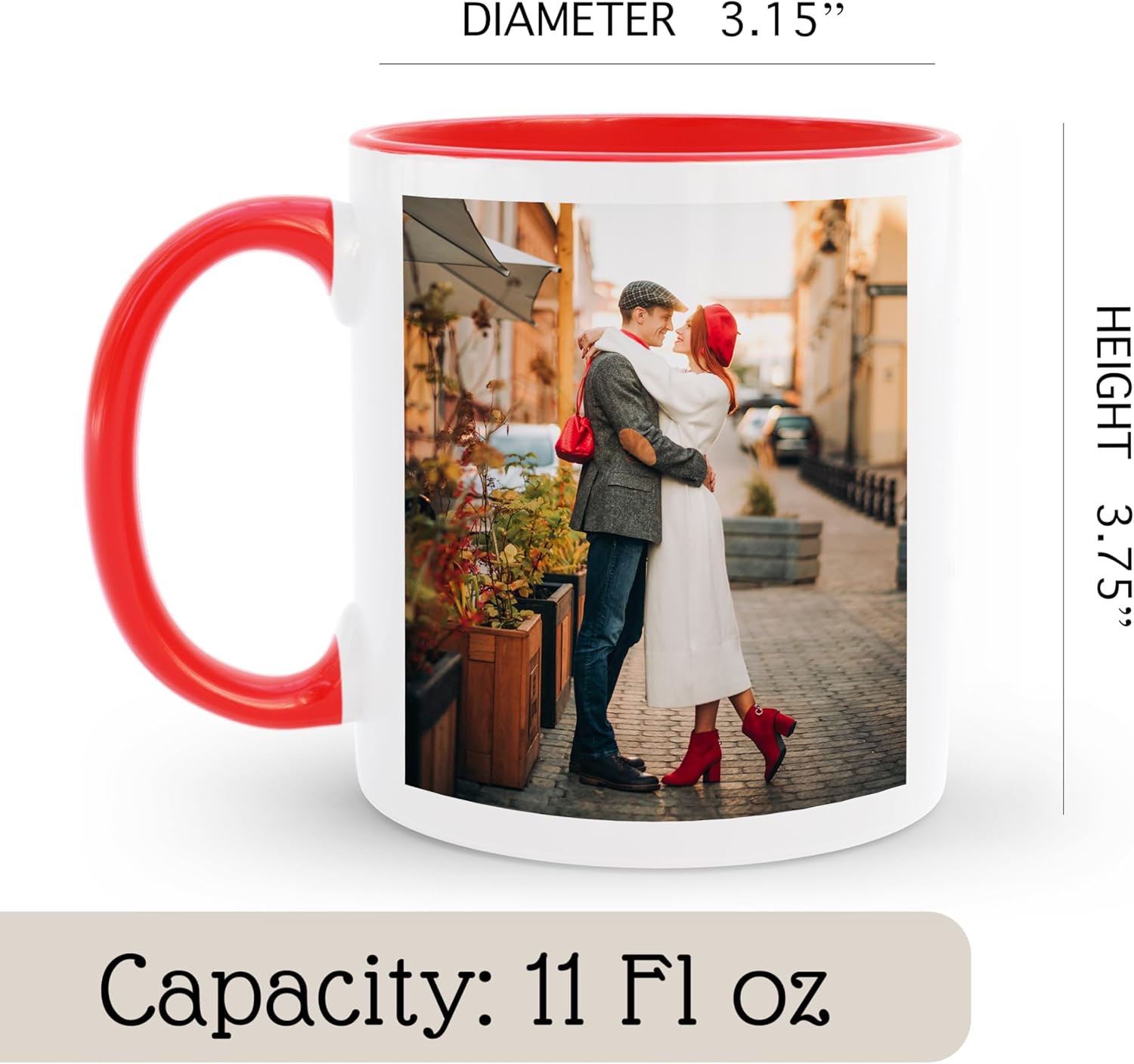Personalized Coffee Mug | Custom Photo Text or Logo Ceramic Mug | Customized 11 Oz Tea Cup – Unique Gift for Men & Women | Taza Personalizadas Design with Picture and Words | White – Red