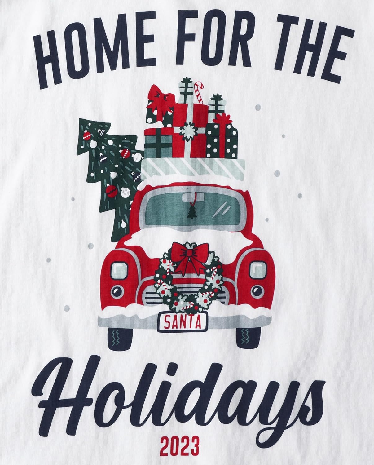 • PAJAMA TOP — Features long raglan sleeves, rib-knit crew neck and sleeve cuffs and 'Home For The Holidays 2023' with car graphic design at front