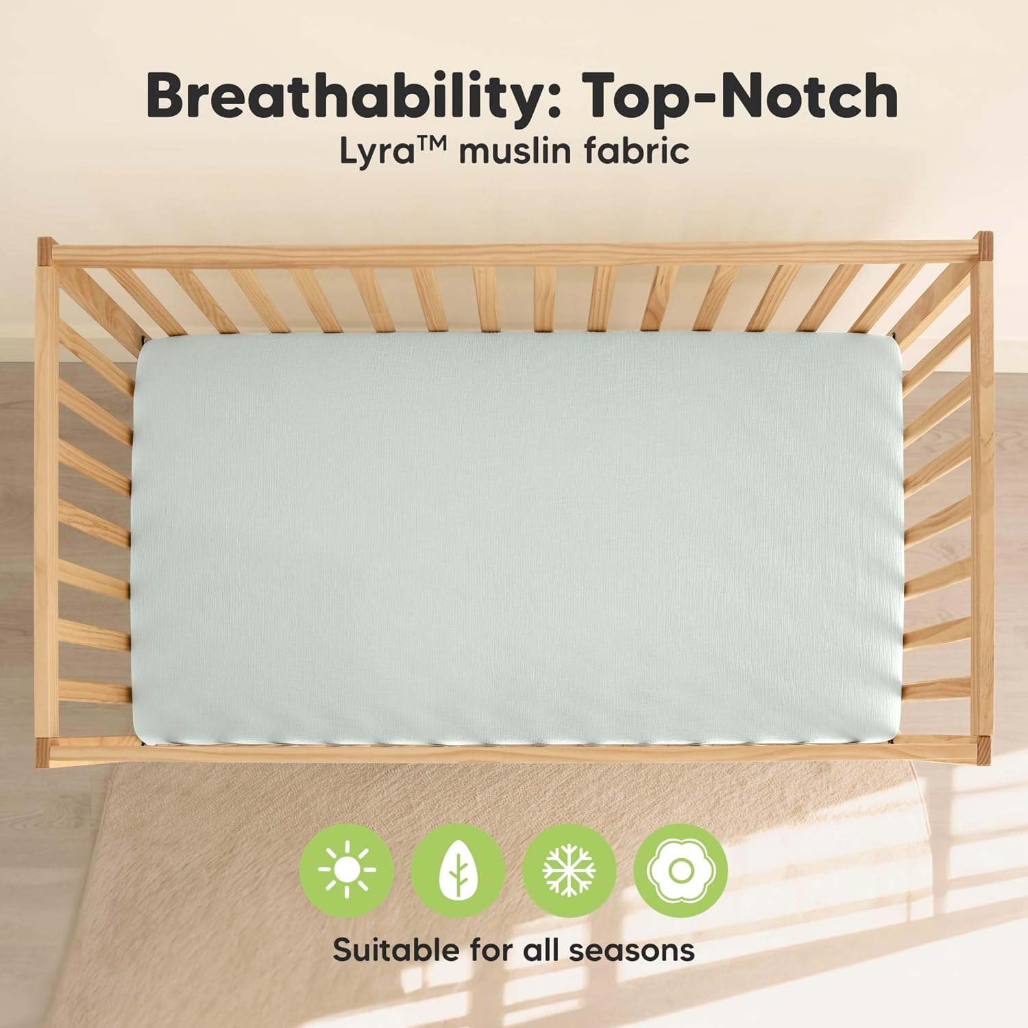 - Lyrically Soft & Breathable - KeaBabies Lyra Muslin Organic Cotton Crib Sheets Fitted keep your baby cozy all night. Exceptionally breathable crib sheets for all-seasons, these toddler sheets soothe baby like a lullaby for peaceful, restful sleep.