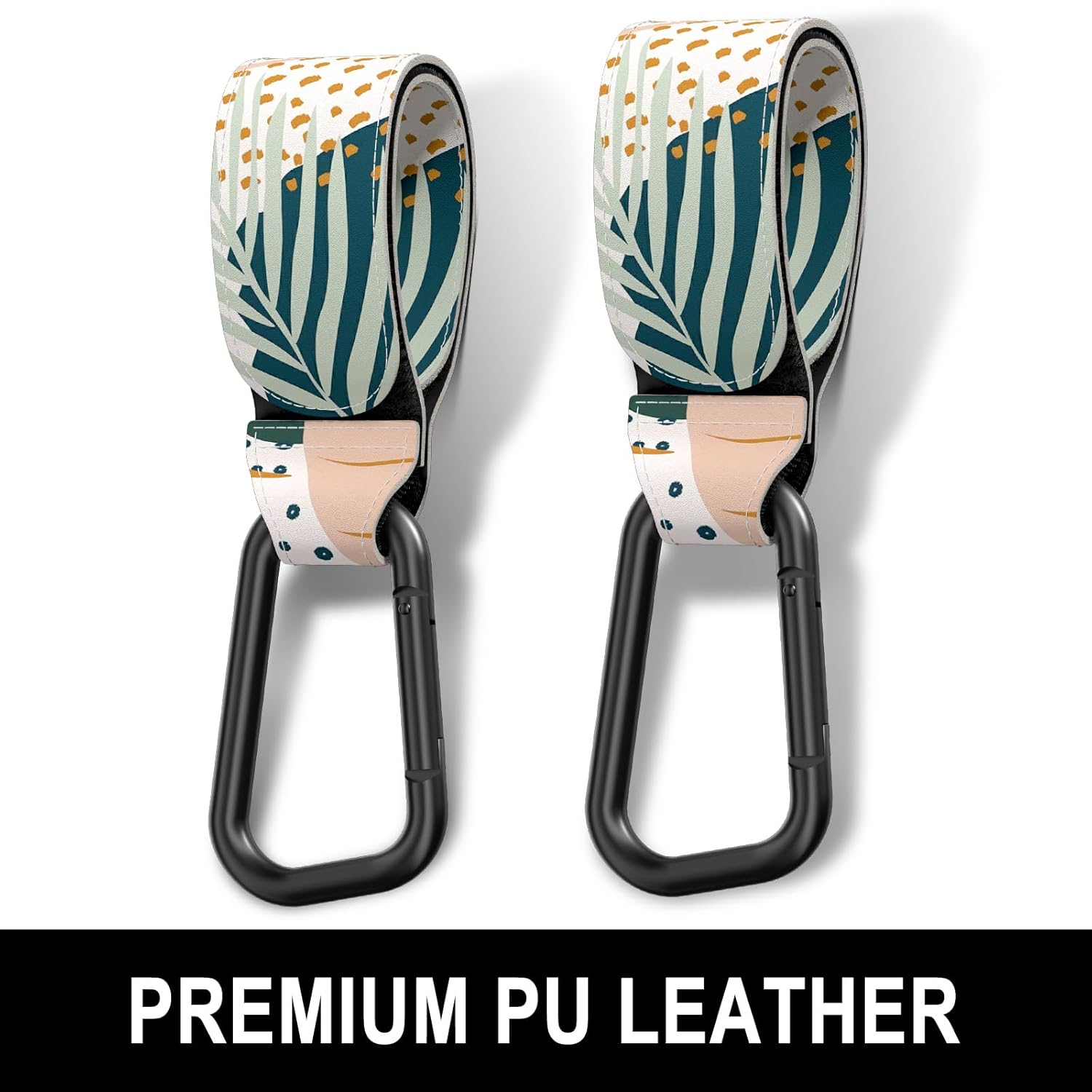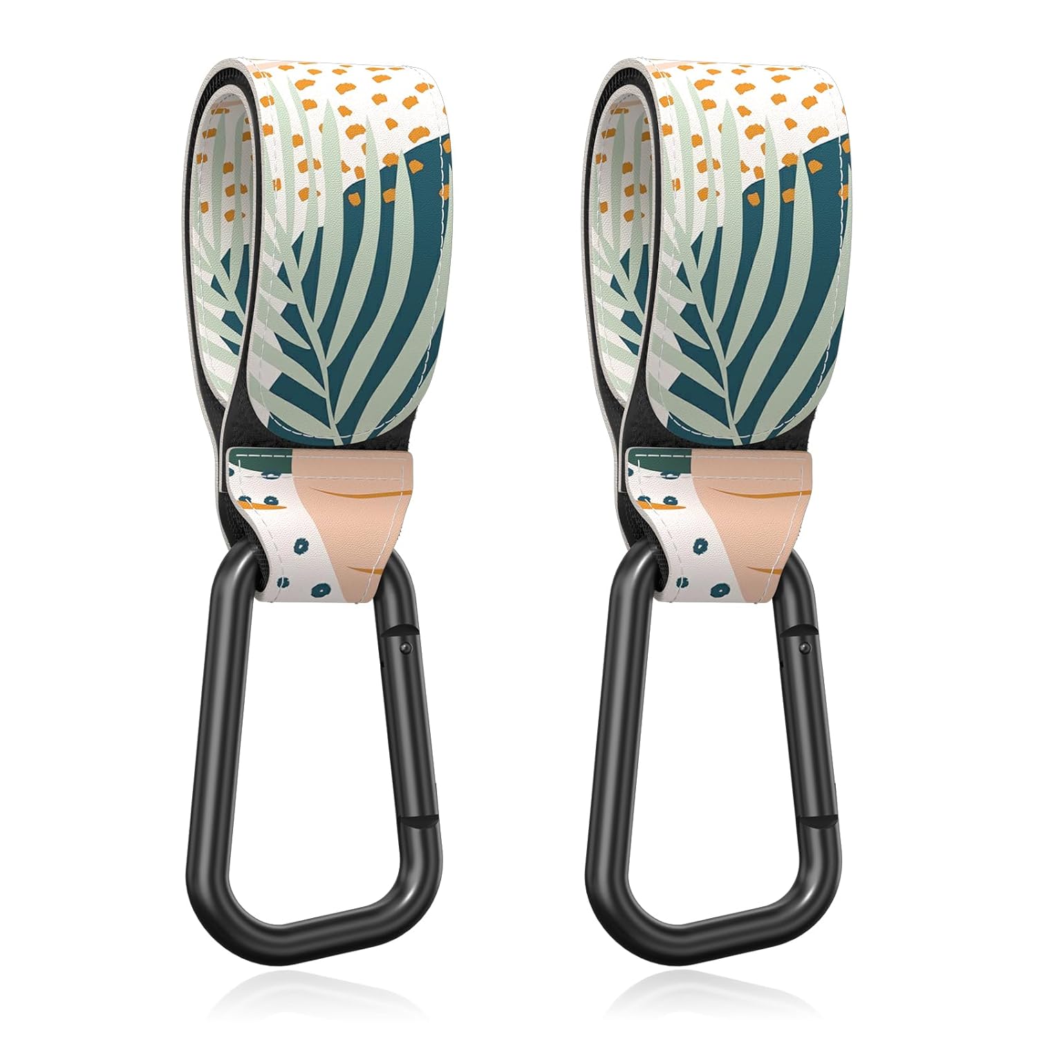 Baby Stroller Hooks for Hanging Bags, Universal Stroller Clips Accessories, Mommy Hook for Diaper Bag, Shopping Cart, Purse, Backpack - 2 Pack, Abstract Leaf