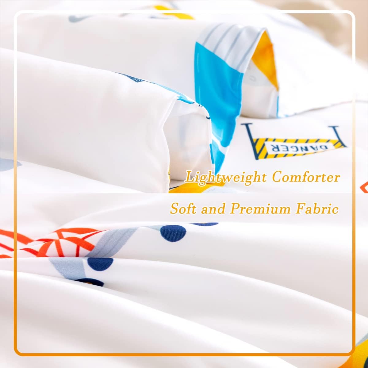 - 【REVERSIBLE DESIGN】This construction toddler bedding for boys and girls is designed with trucks, excavators, and cranes patterns on white color, typically featuring colorful and detailed construction vehicles can help stimulate children's interest and add more fun to babies room. It’s also a great option for any toddler room as a bedroom décor.