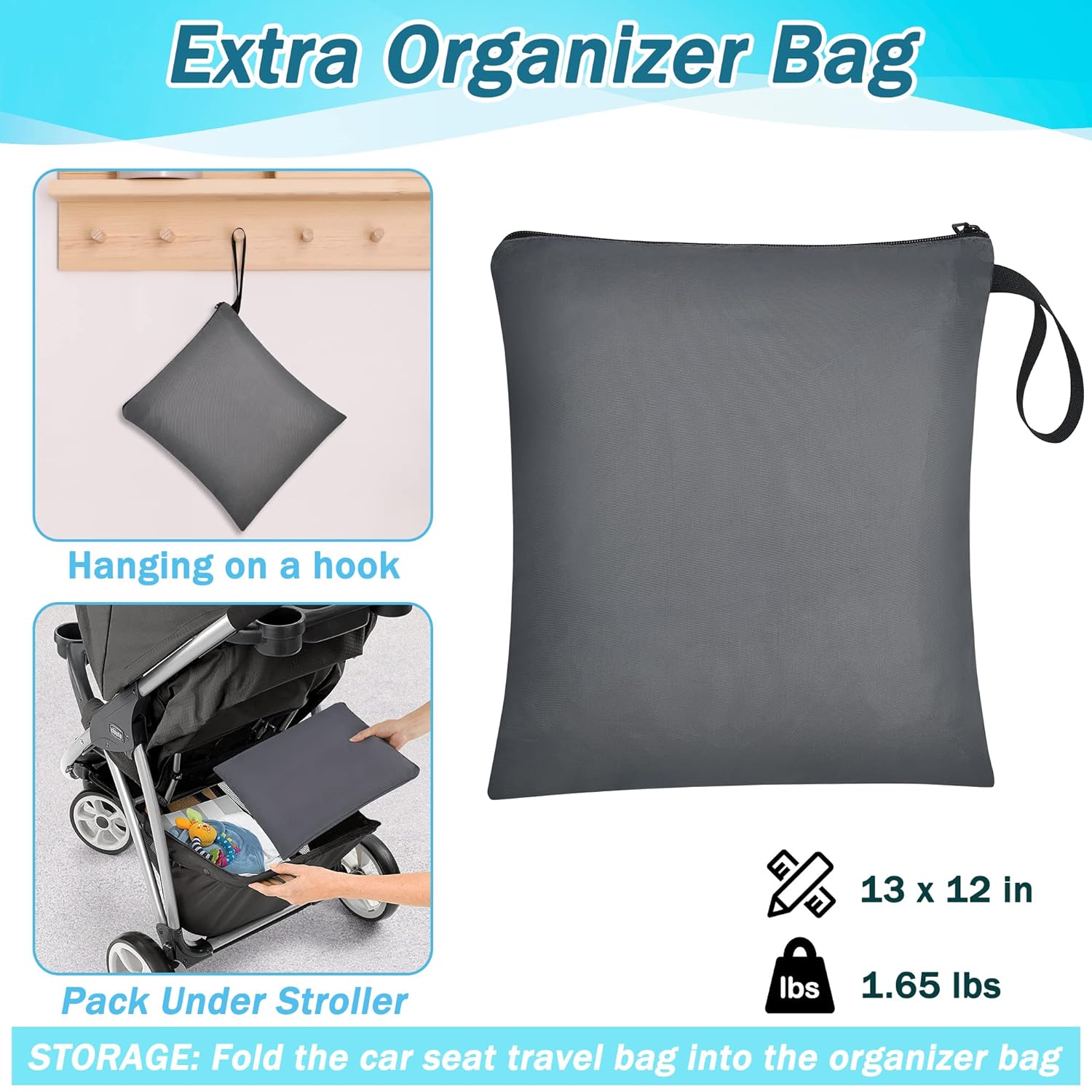 - Easy travel: Unique Grey color and clear ID tag easily identify your car seat for gate-check and ensure safe return to you at the airplane gate. Side zippered pockets provide extra space to store small items such as diapers, towels, wipes, etc. Airline certified. Perfect holidays gifts for men women.