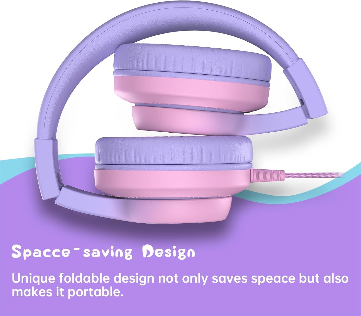 - [In-line remote & 85/94dB Volume Limit]:1-Button control, including play/pause/answer/hang-up, next track/previous track. The toddler headphone adopt volume limiter(85dB/94dB) to protect vulnerable and sensitive ears of kids. Let your child love what they're listening to, at a safe volume.