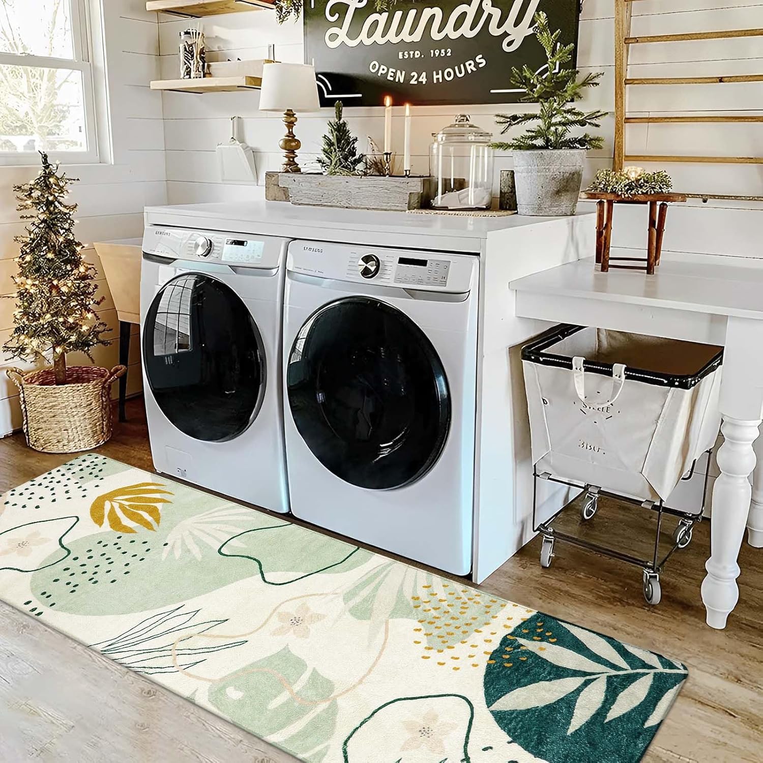 Lahome Green Runner Rugs for Hallway 2x8 Non-Slip Washable Kitchen Rugs Lightweight Low-Pile Throw Laundry Runner Rug, Boho Botanical Print Soft Indoor Carpet Runner for Entryway Bedroom Bathroom