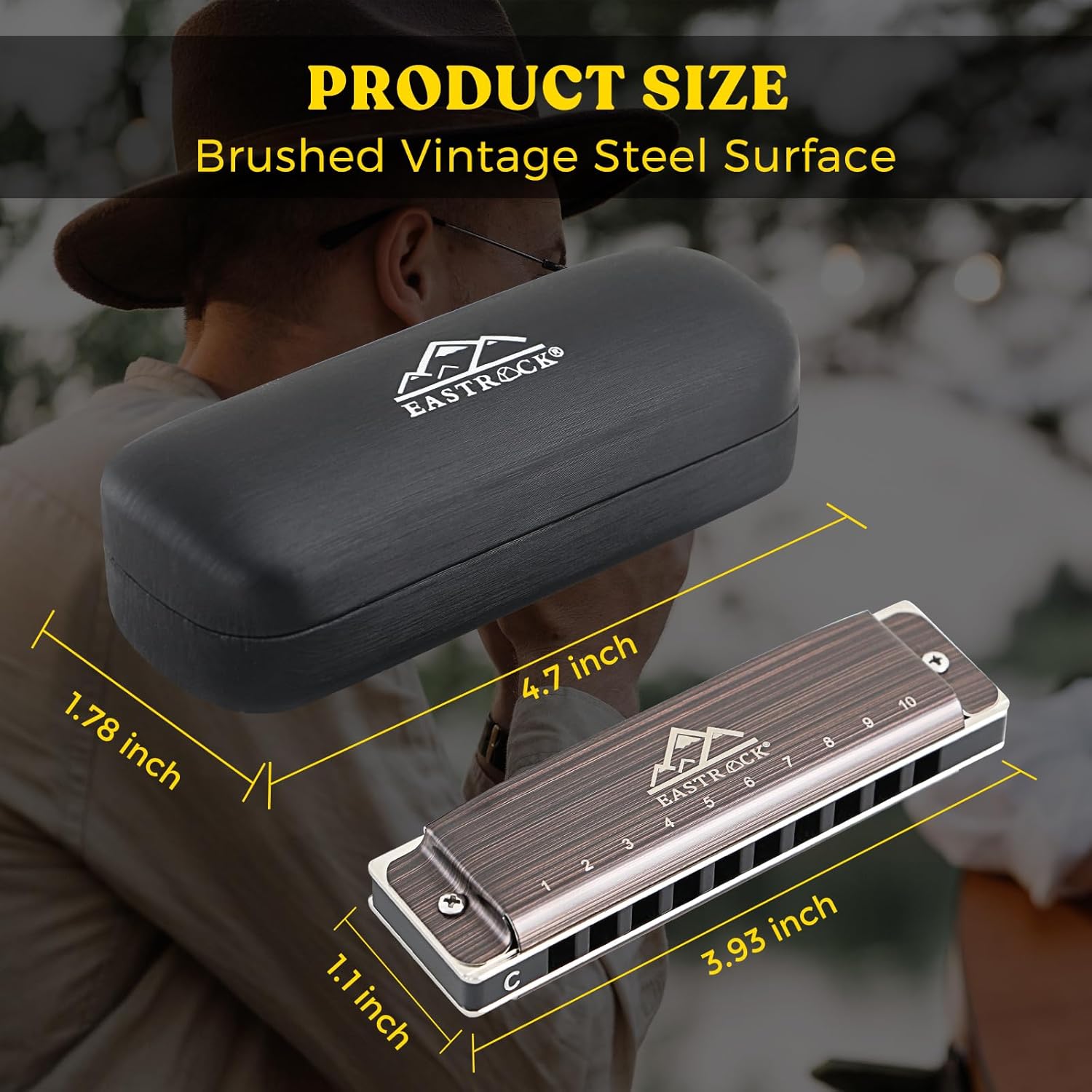 EastRock Harmonica, Blues Harmonica Mouth Organ 10 Hole C Key with Case, Diatonic Harmonica for Professional Player, Beginner, Students, Adult, Friends, Gifts(Brushed Metal)