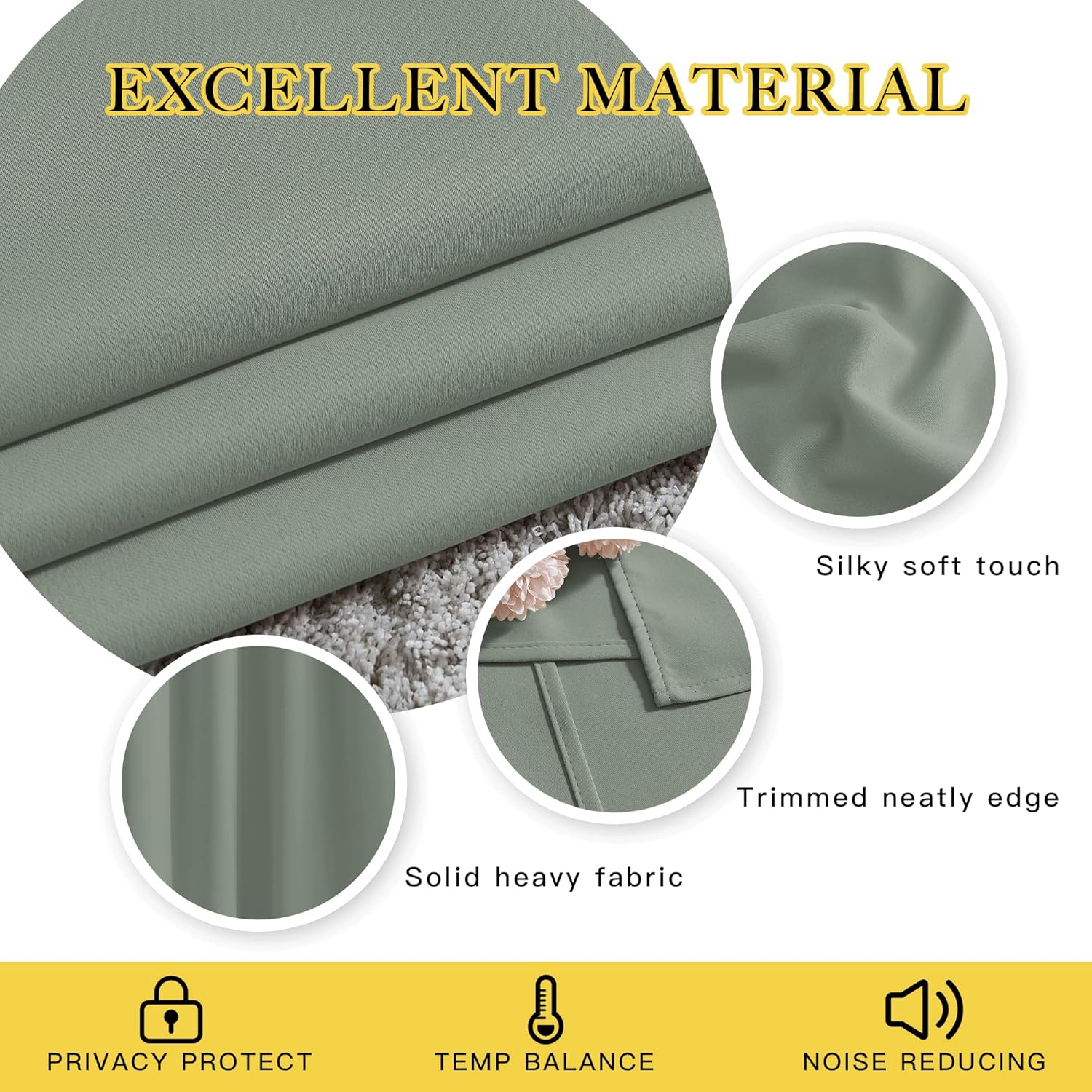 NICETOWN Sage Green Blackout Curtains & Drapes for Bedroom - Room Darkening Energy Saving Thermal Insulated Grommet Voice Reducing Room Dividers Window Treatments for Patio (2 Panels, W66 x L72)