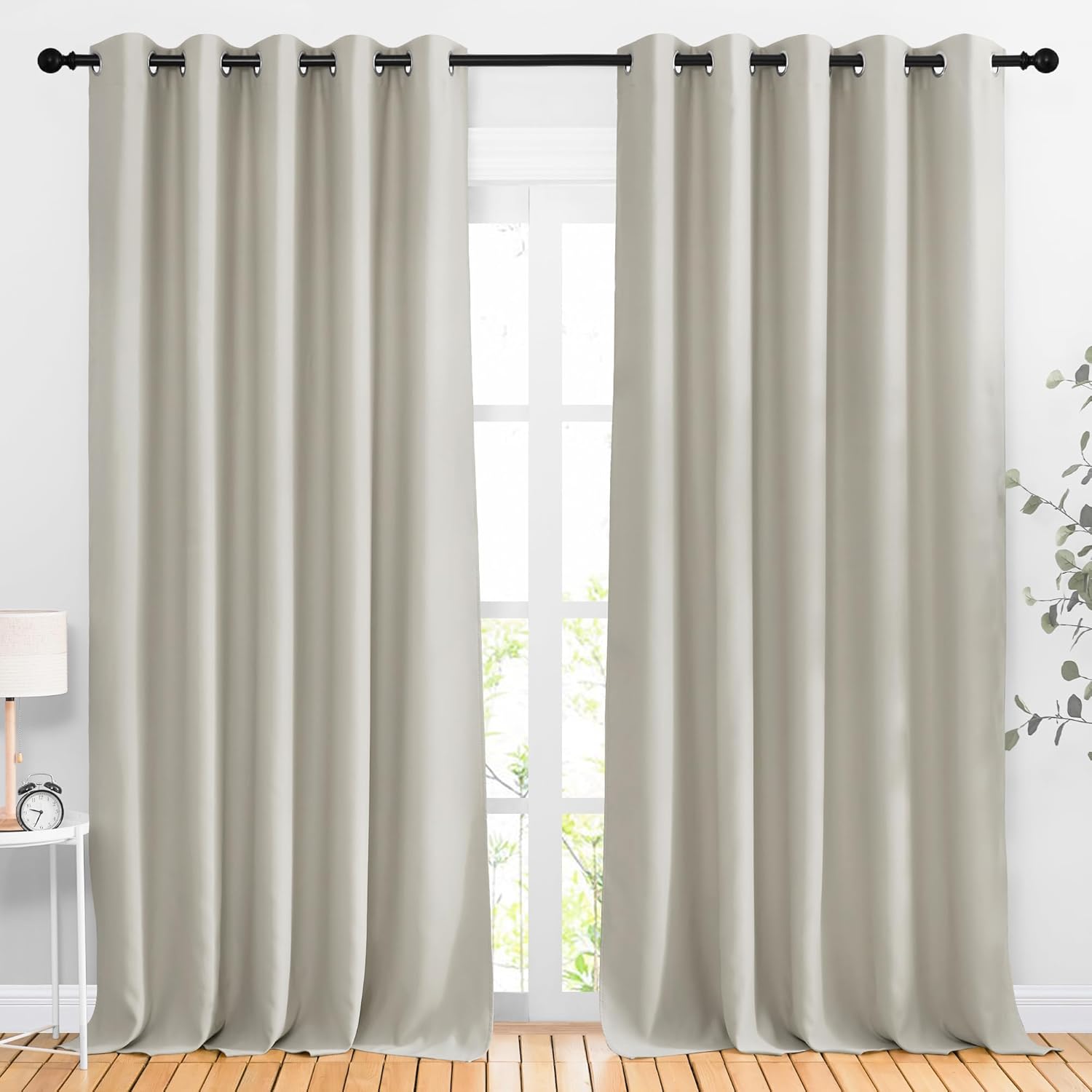 NICETOWN Blackout Sliding Door Curtains for Bedroom 90 inches Long - Window Treatment Thermal Insulated Solid Grommet Room Drapes Sound Reducing for Living Room (Natural, Set of 2, W66 x L90)