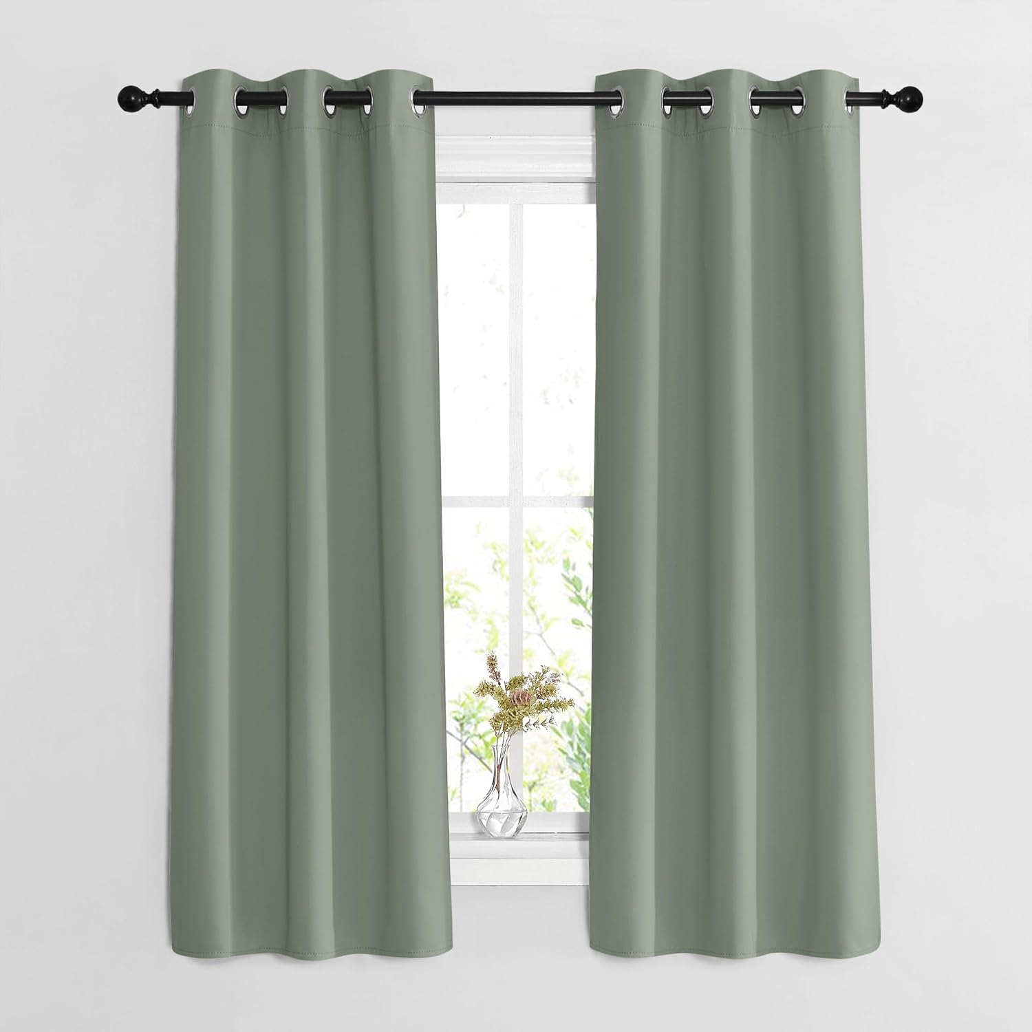 NICETOWN Sage Green Blackout Curtains & Drapes for Bedroom - Window Treatment Energy Saving Thermal Insulated Room Darkening Grommet Drapes for Living Room (2 Panels, W37 x L63)