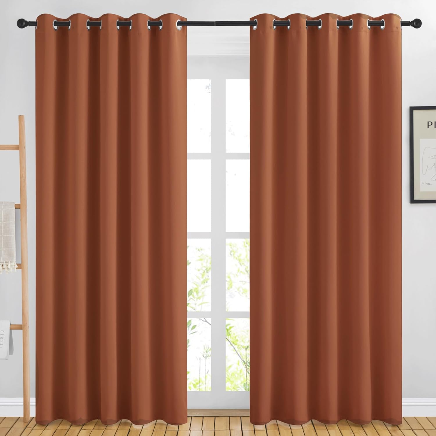 NICETOWN Blackout Large Window Curtains 84 inches Long - Grommet Room Darkening Sliding Door Thermal Curtains & Drapes Sound Block for Bedroom/Living Room (Burnt Orange, 2 Panels, W66 x L84)