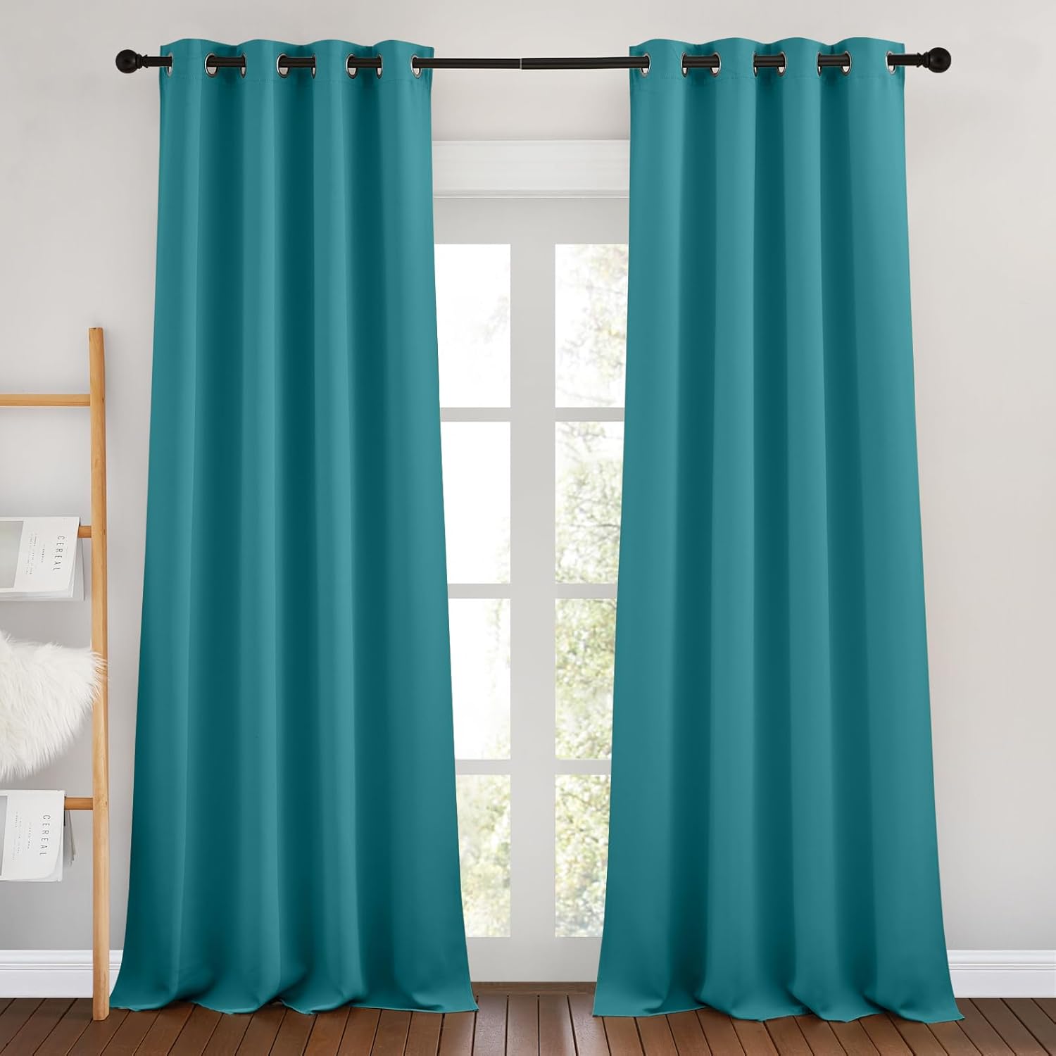 NICETOWN Peacock Teal Blackout Curtains & Drapes - Thermal Insulated Grommet Blackout Light Blocking Room Darkening Window Treatments for Bedroom/Living Room (2 Panels, W46 x L90)
