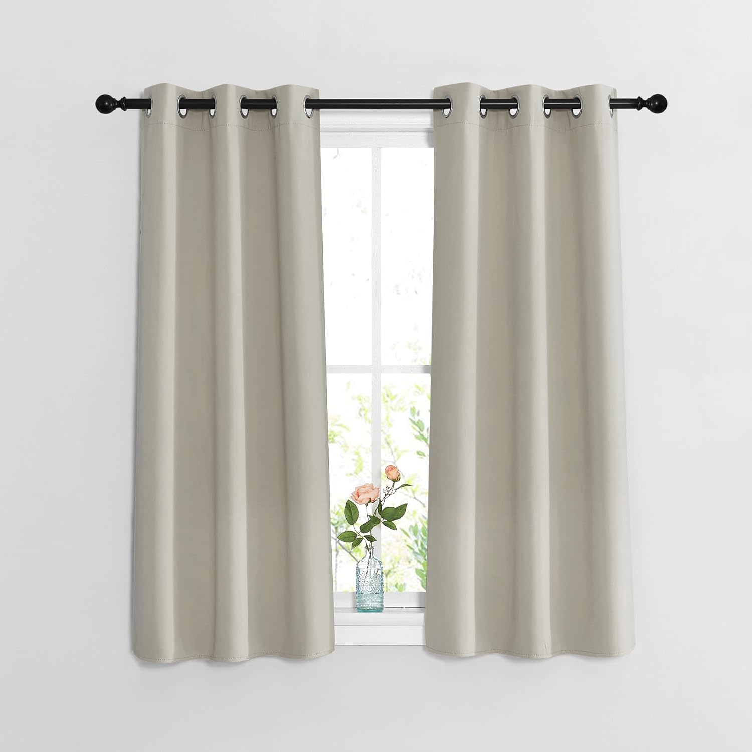 NICETOWN Blackout Bedroom Curtains 48 inches Long - Window Treatment Thermal Insulated Solid Grommet Room Darkening Privacy Sound Reducing for Kitchen (Natural, Set of 2, W37 x L48)