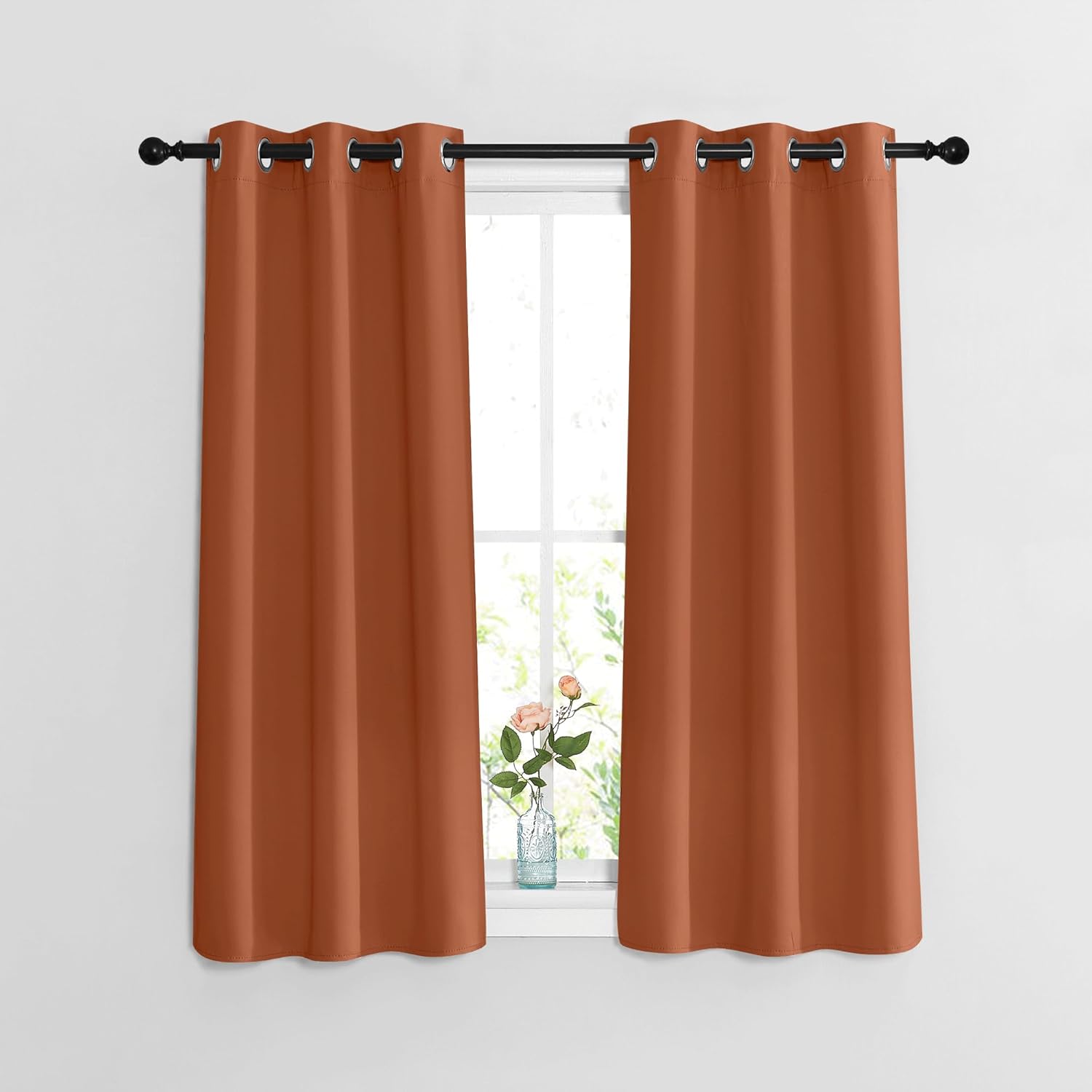 NICETOWN Small Blackout Curtains for Bedroom - Grommet Modern Thermal Insulated Room Darkening Window Treatments Sound Reducing for Cafe/Kitchen, Burnt Orange, W37 x L54, 2 Panels