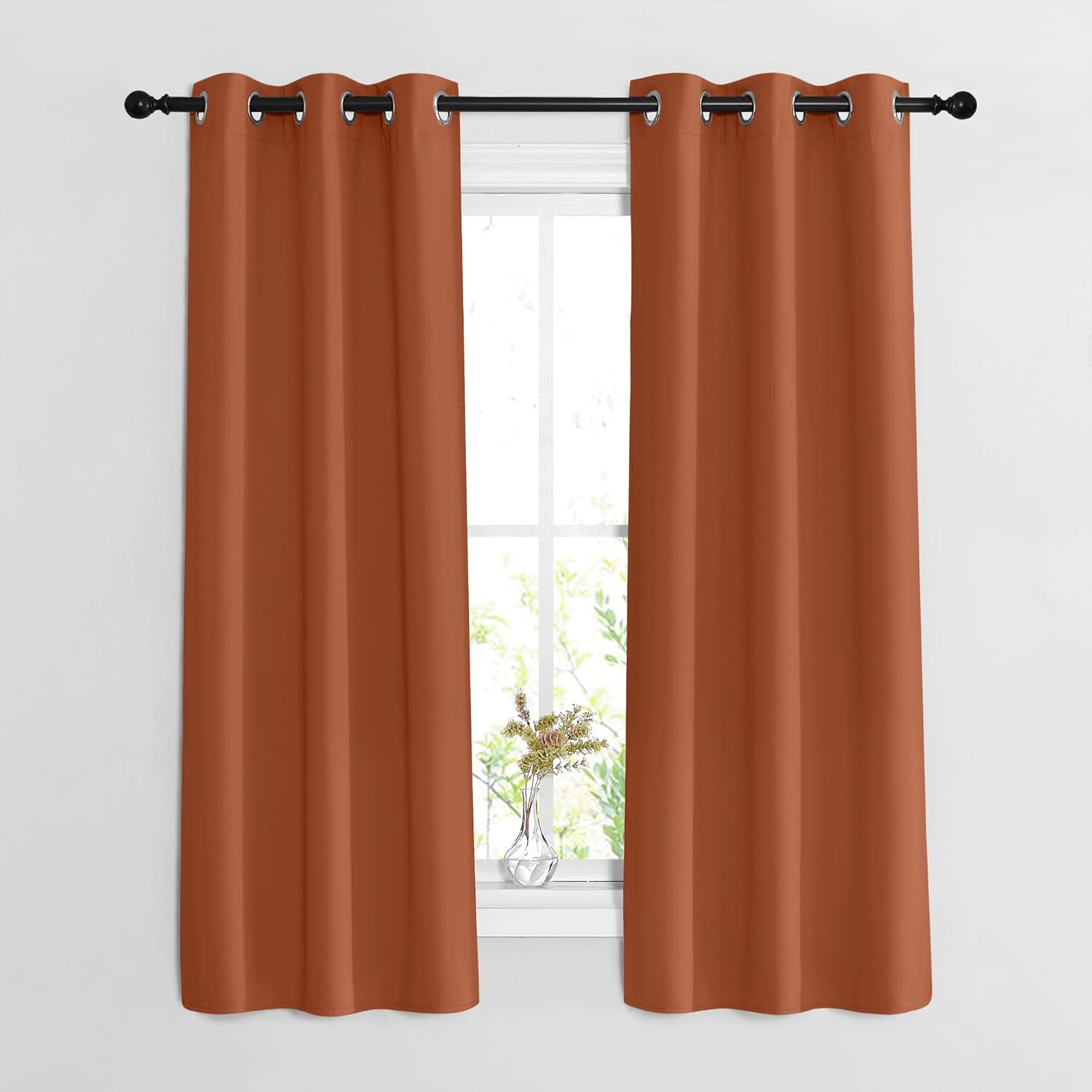 NICETOWN Blackout Burnt Orange Curtains 63 inch Length 2 Panels - Grommet Top Room Darkening Thermal Curtains Sound Reducing Window Treatments for Bedroom/Kid Room, W37 x L63