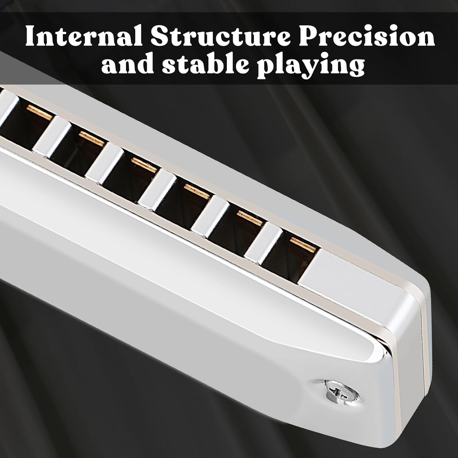 - 10 Hole Chromatic Harmonica: The harmonica is designed to make users feel more comfortable,suitable for beginners to advance to use,but also suitable for veteran harmonica players to use