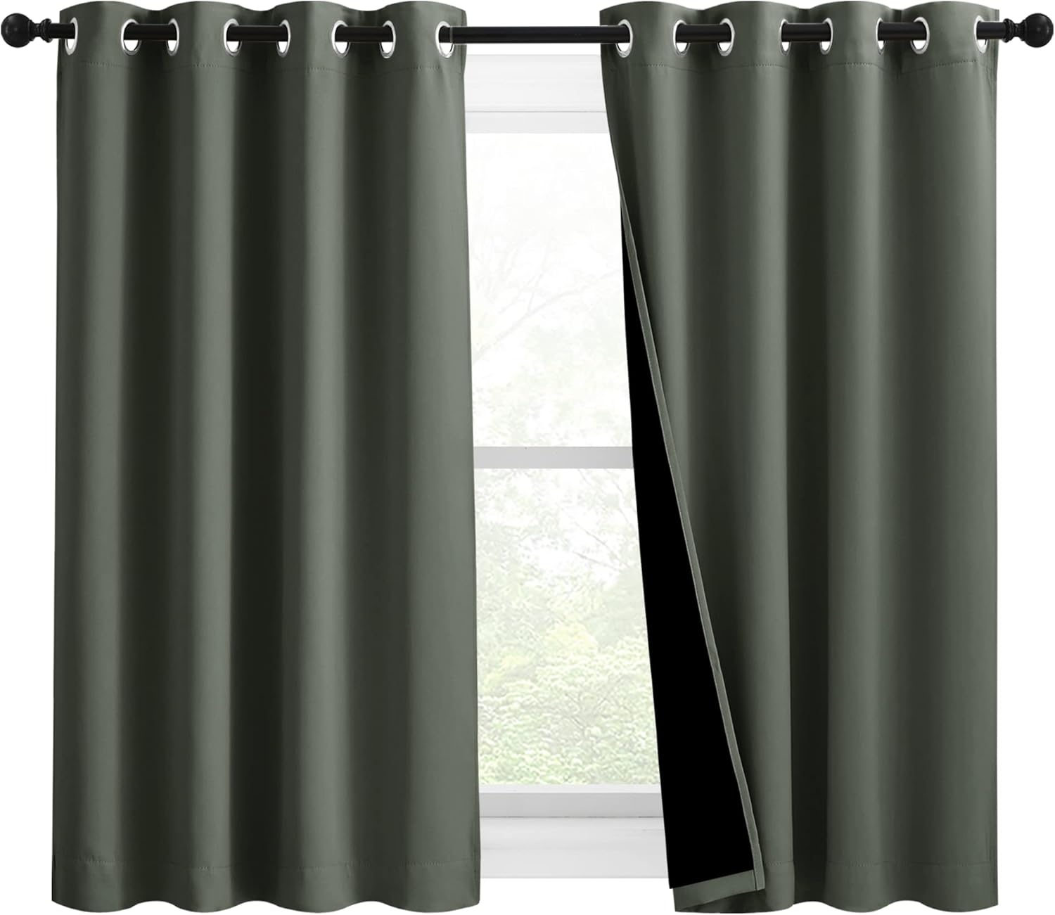 NICETOWN 100% Blackout Curtains 54 inches Long, Double-Deck Completely Blackout Window Treatment Thermal Insulated Lined Drapes for Small Window (Dark Mallard, 1 Pair, 46 inches Width Each Panel)