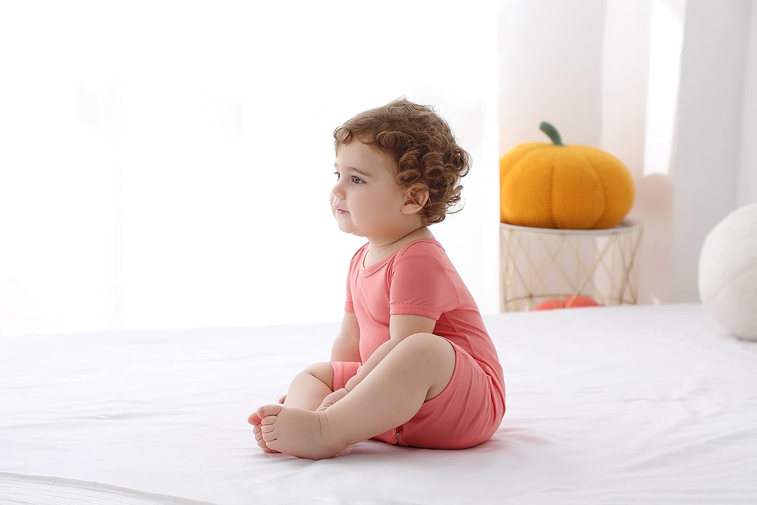 GUISBY Rayon Baby Pajamas, Short Sleeve Footless Rompers, Snap Closure Sleeper for Boy Girls