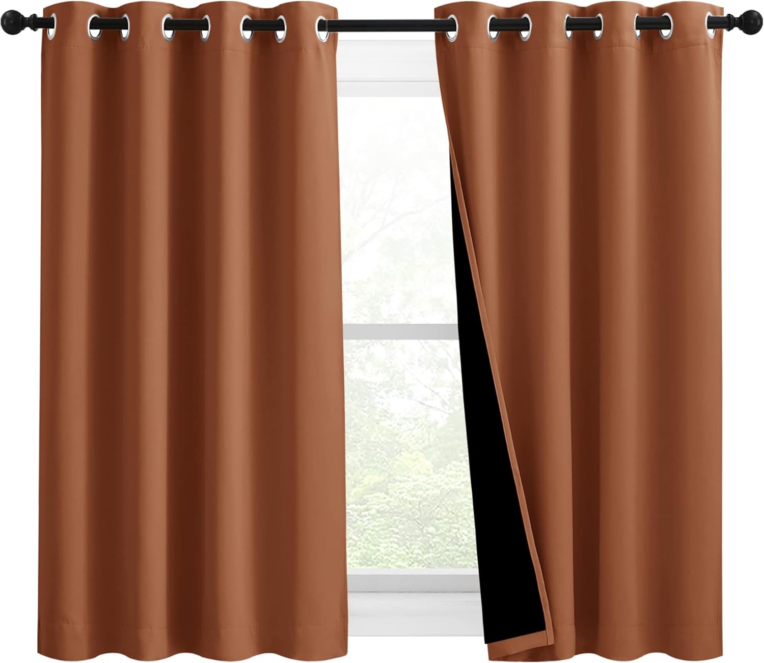 NICETOWN 100% Blackout Curtains 54 inches Long, Double-Deck Completely Blackout Window Treatment Thermal Insulated Lined Drapes for Small Window (Burnt Orange, 1 Pair, 46 inches Width Each Panel)