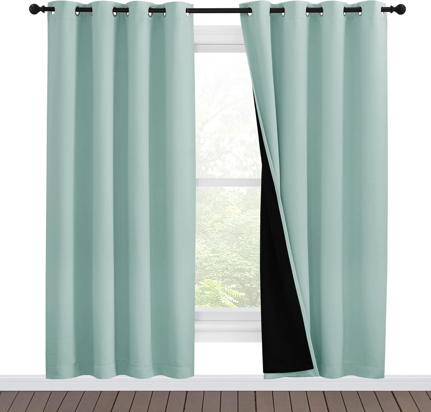 NICETOWN 100% Blackout Window Curtain Panels, Full Light Blocking Drapes with Black Liner for Nursery, 78-inch Drop Thermal Insulated Draperies (Aqua Blue, 2 Pieces, 55-inch Wide Per Panel)