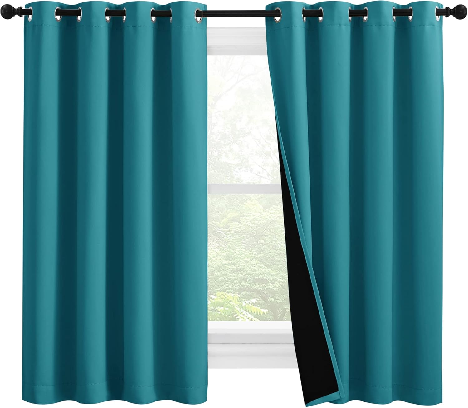 NICETOWN 100% Blackout Curtains 57 inches Long, Double-Deck Completely Blackout Window Treatment Thermal Insulated Lined Drapes for Small Window (Peacock Teal, 1 Pair, 55 inches Width Each Panel)