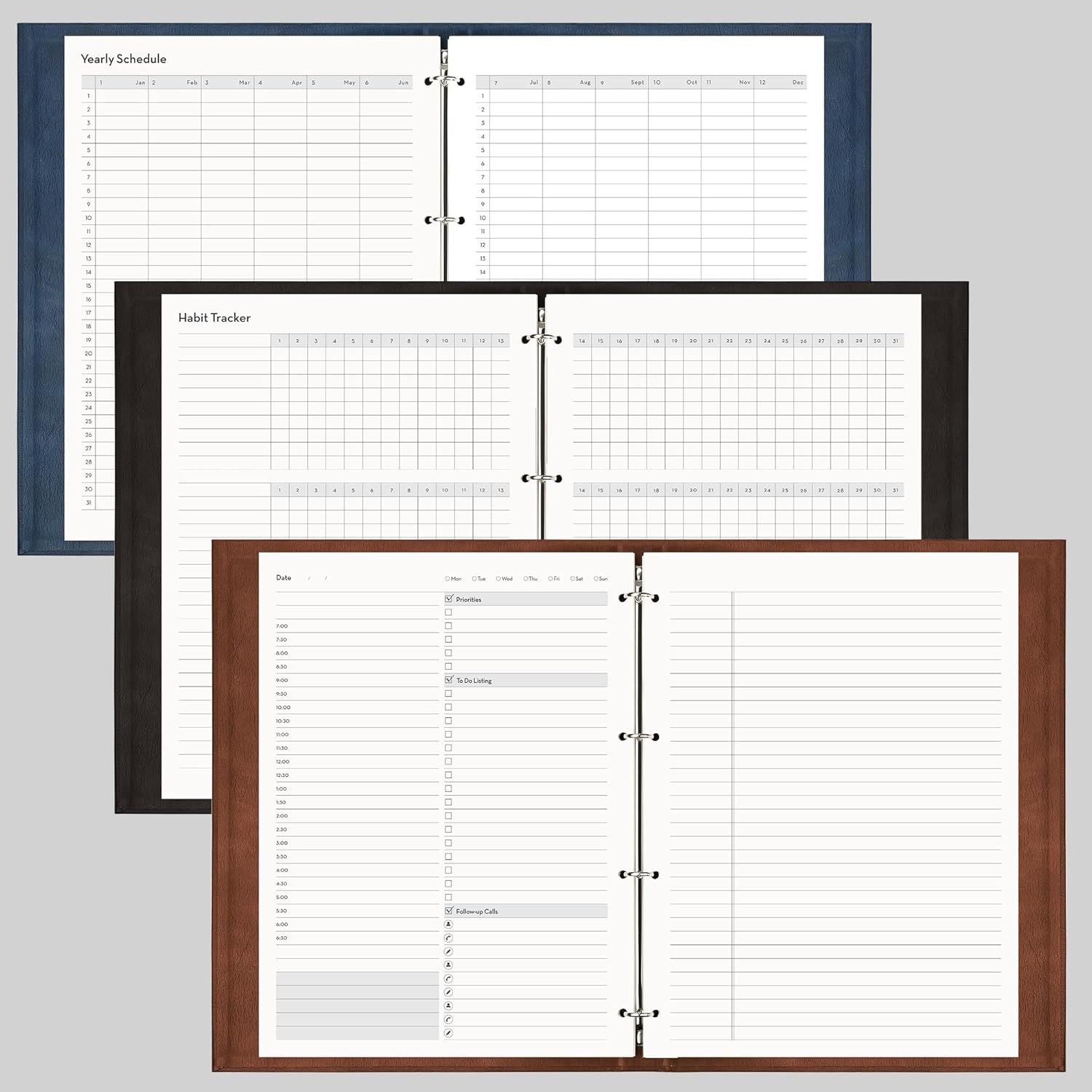 EMSHOI Undated Daily Planner - A4 Large to Do List Notebook Appointment Book for Productivity Time Management, with Hourly Planner Refills, Hardcover Binder Leather Journal - 240 Pages, 8.5x11