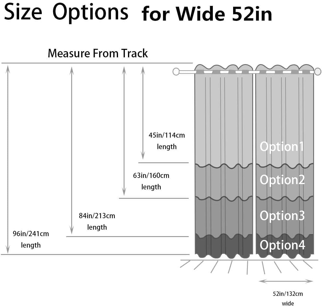 - ★【ABOUT PACKAGE INCLUDE】Your package includes 2 panels of ombre curtains, each panel measures 52 inches in width, a total width of 104 inches. 8 silvery grommets(1.6-inch inner diameter) of each panel make the blackout curtains easy to install and slide.