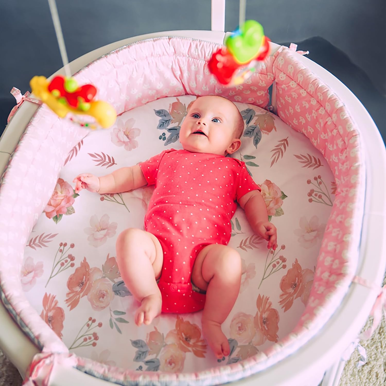 - FRIENDLY TO MOM: We helped mothers find a cradle sheet bassinet cover that is super easy to install and use, which is not only safe for the baby but also has a stylish flower pattern. It can also be used to decorate the baby's room and take photos to record every moment of the baby's growth